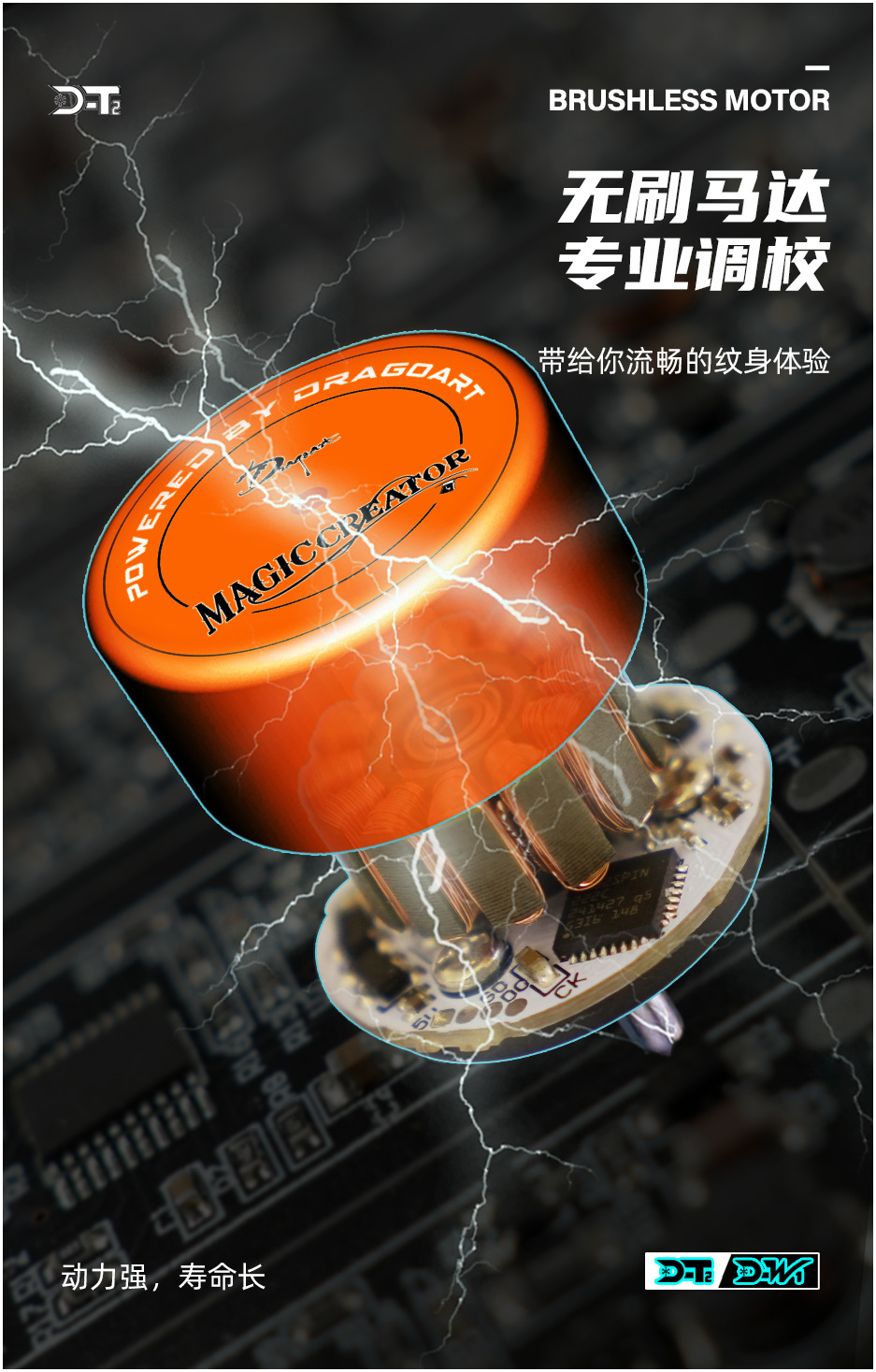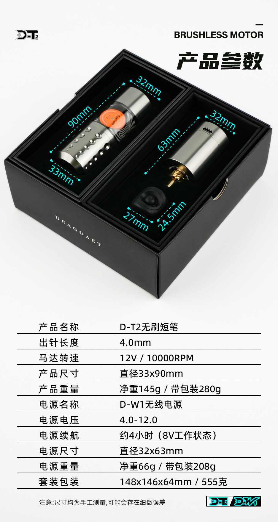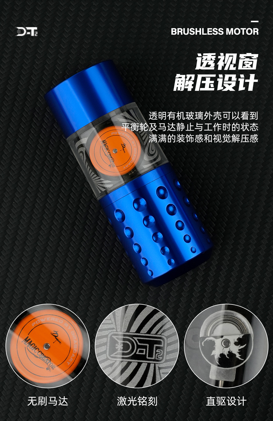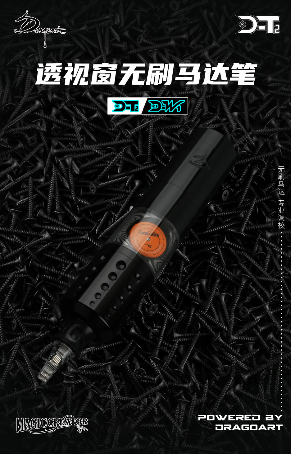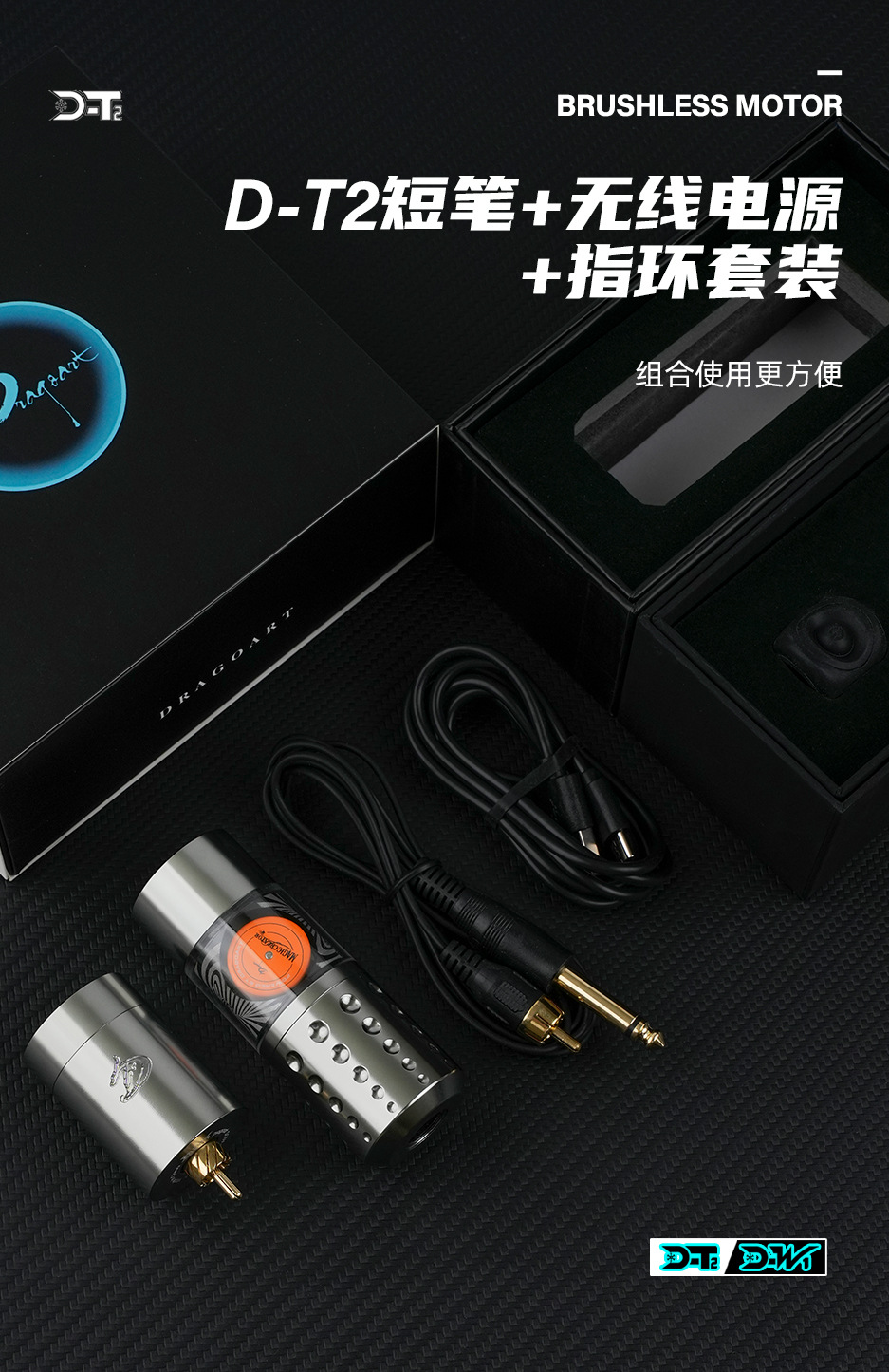 Equipo del tatuaje del arte del Dragón D-T2 nuevo tatuaje inalámbrico batería integrada pluma ventana transparente motor sin escobillas máquina de tatuaje