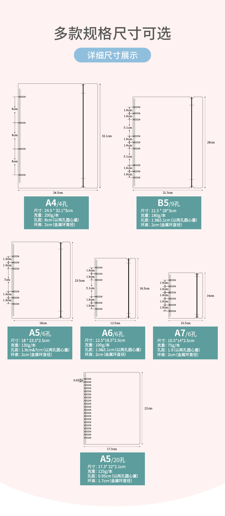 | Especificación | A4 abrazadera en forma de O de 4 orificios,Correa A4 de gran apertura, clip tipo 0 de 4 orificios,correa a5 clip O de 6 agujeros,correa a6 clip O de 6 agujeros,correa a7 6 agujeros clip tipo 0,Correa B5 Clip en forma de O de 9 orificios,Carcasa A5 8 agujeros - color transparente,Carcasa B5 8 agujeros-color transparente,Carcasa A4 8 agujeros-color transparente,Correa grande B5 9 agujeros tipo 0 clip,Gran carcasa B5 8 agujeros-color transparente,Abrazadera de hojas de 26 orificios con correa B5 grande |