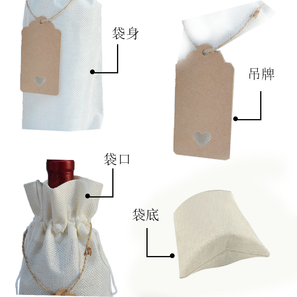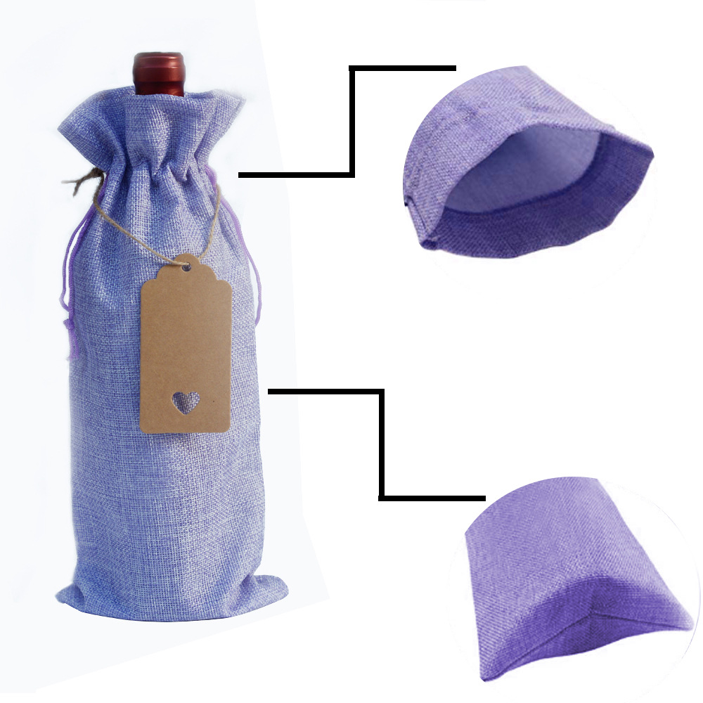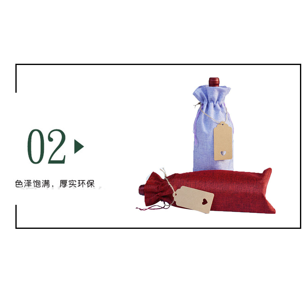 Bolsa de botella de vino tinto 10 piezas bolsa de vino tinto de lino Traje + etiqueta bolsa de embalaje de vino tinto bolsa de cordón de lino en stock