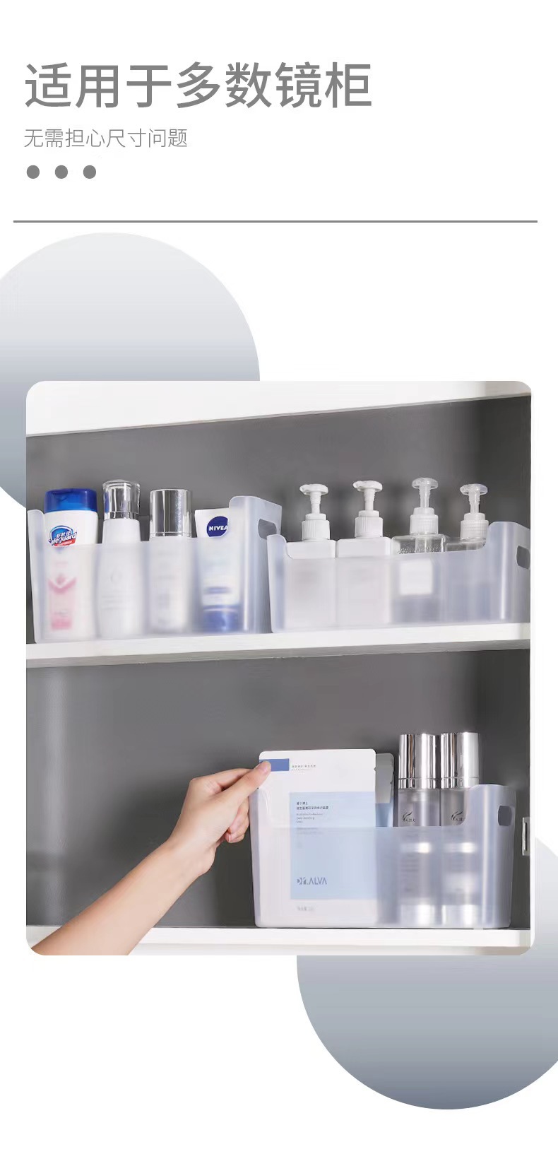 Nuevo espejo gabinete en forma de U boca caja de almacenamiento cosméticos almacenamiento rack transparente caja de artículos diversos baño lavabo almacenamiento rack