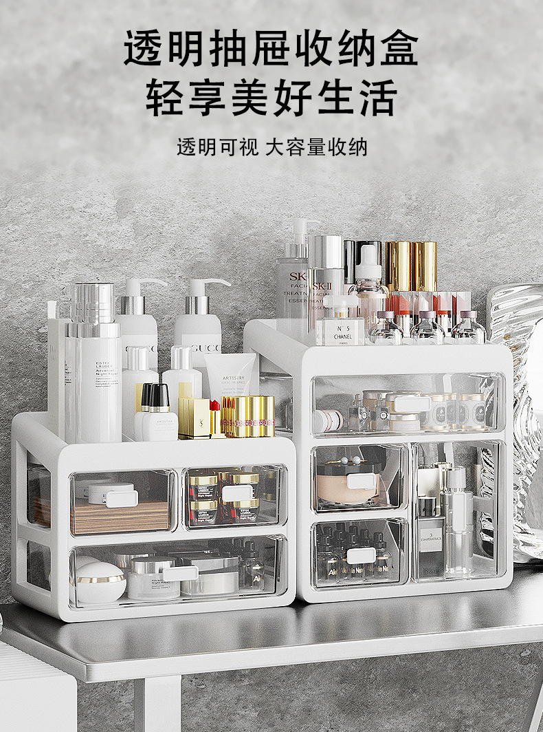 Caja de almacenamiento de cosméticos cajón transparente estante de almacenamiento de escritorio tocador caja de cosméticos estante de cuidado de la piel