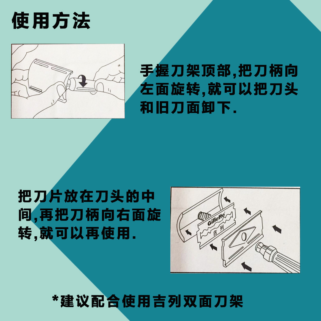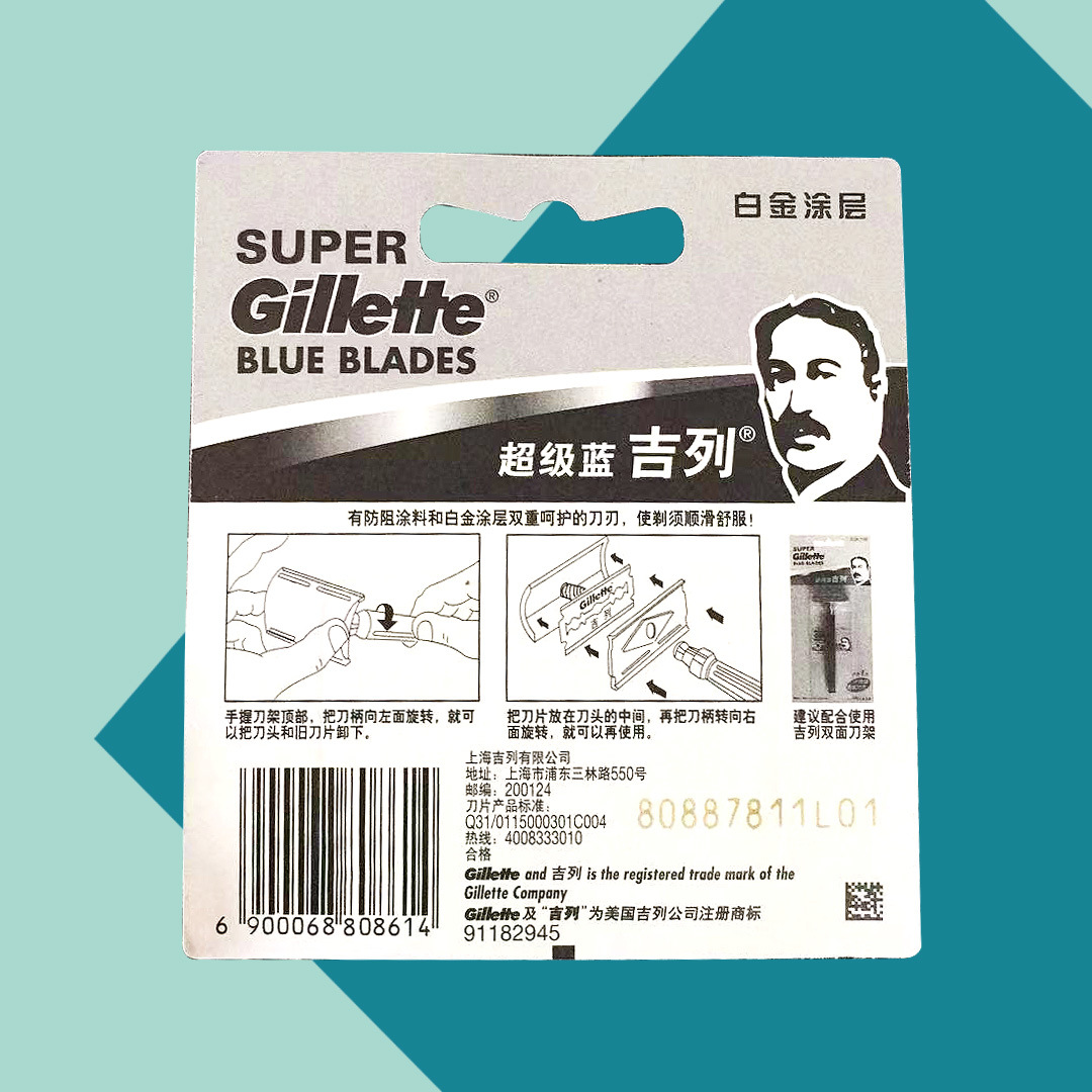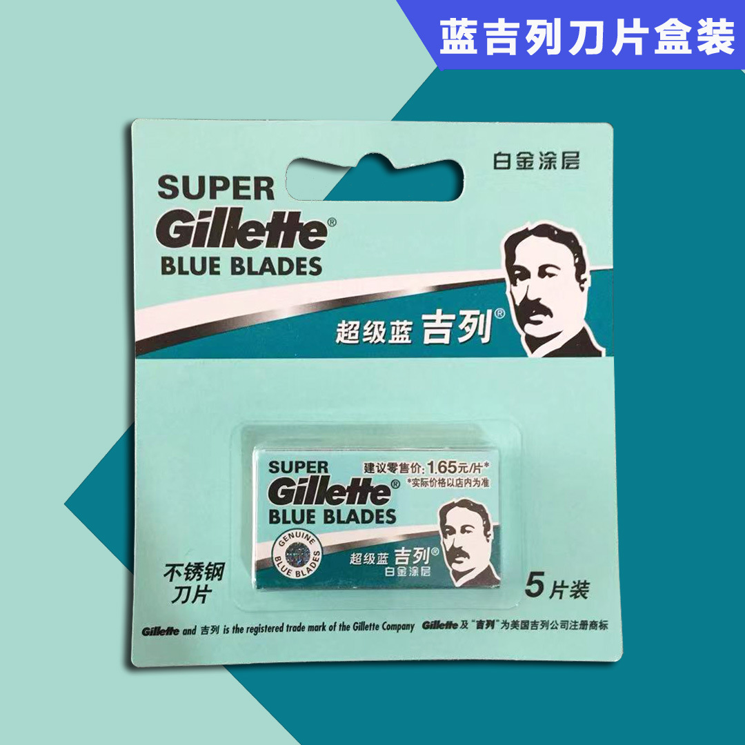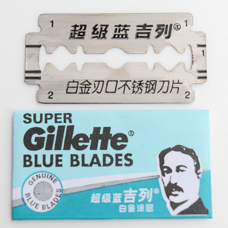 Azul Gillette Acero inoxidable doble cara hoja de afeitar manual vieja hoja de afeitar tarjeta colgante