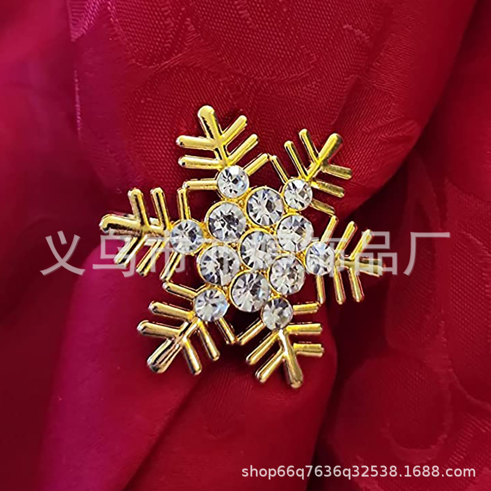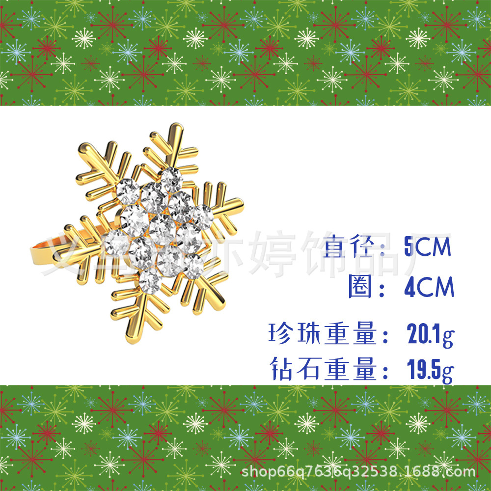 Venta directa de fábrica de Navidad aleación electrochapada copo de nieve servilleta anillo metal Navidad ciervos servilleta hebilla