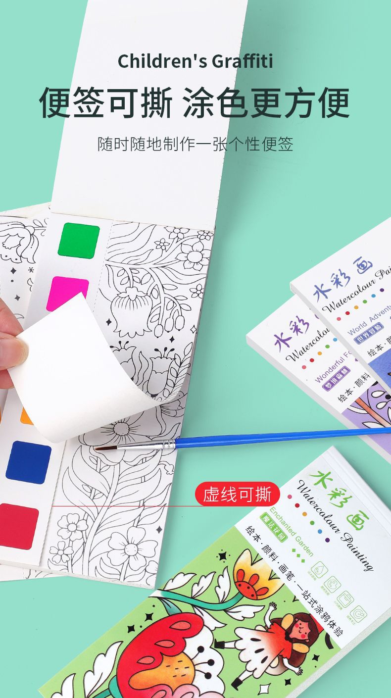 Libro de colorear para niños de pintura de agua Libro de acuarela DIY hecho a mano portátil jardín de infantes super largo libro de notas libro de colorear de acuarela