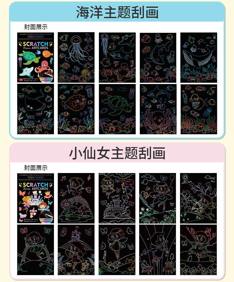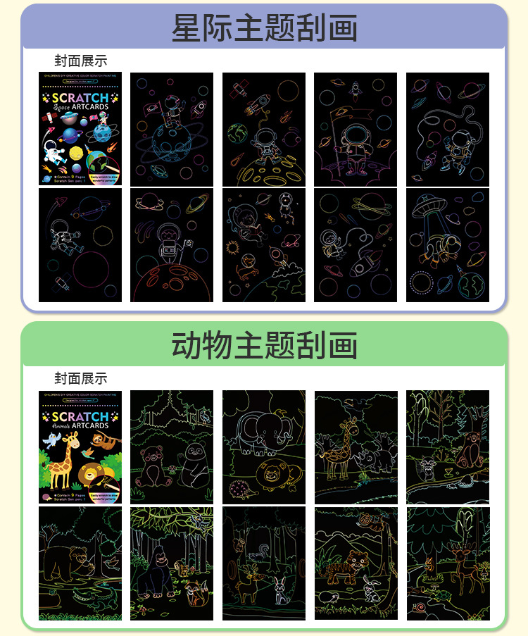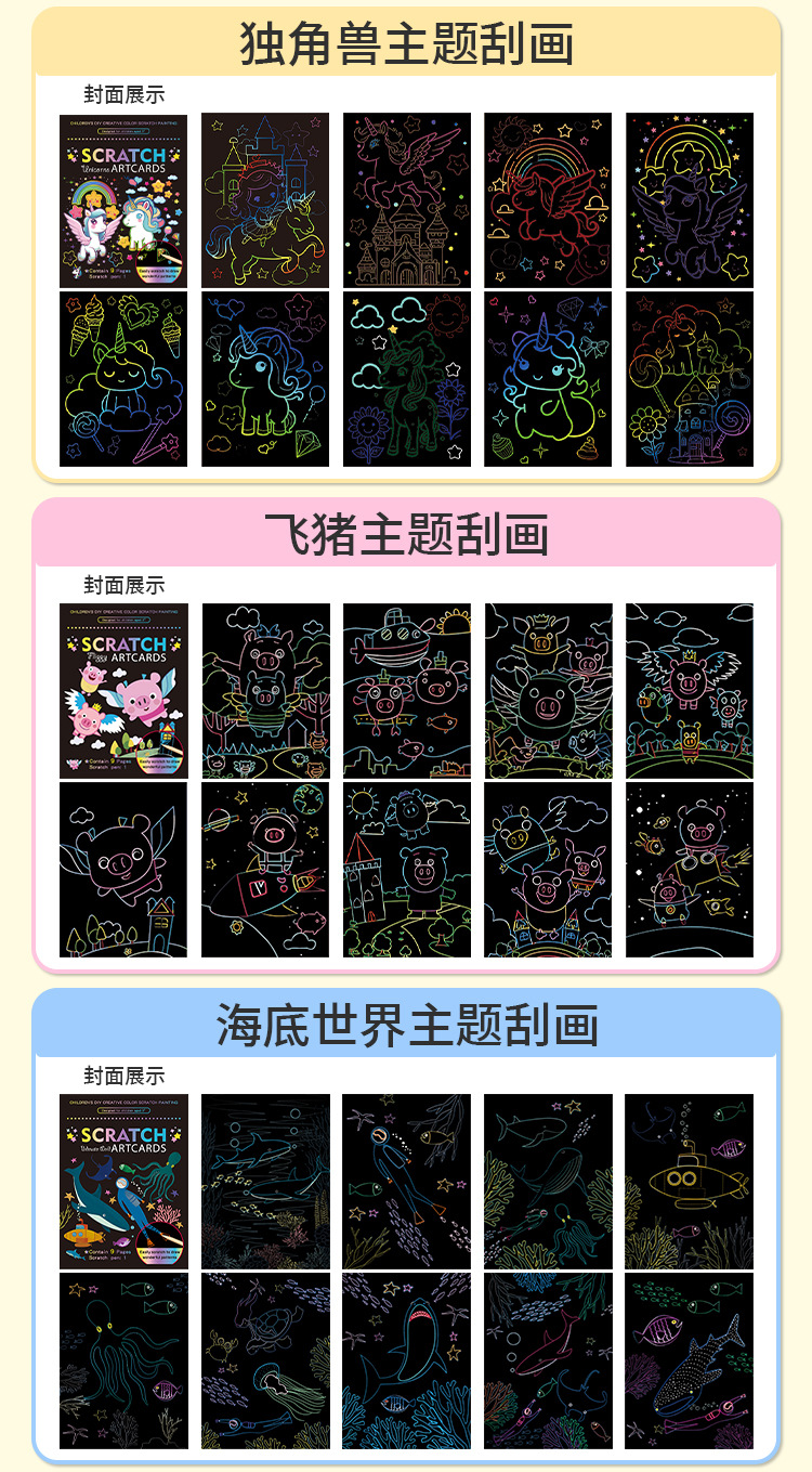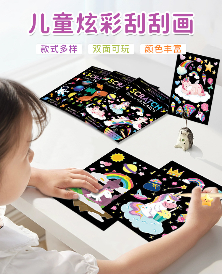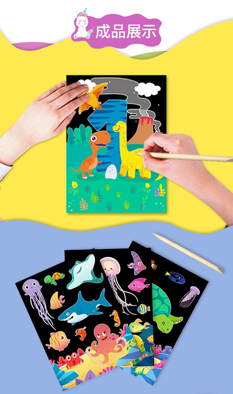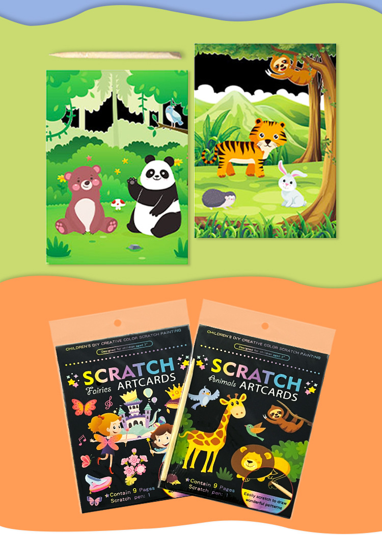 Scratch pintura niños dibujos animados kindergarten estudiante de arte creativo DIY graffiti suministros traje colorido rasguño Pintura Libro