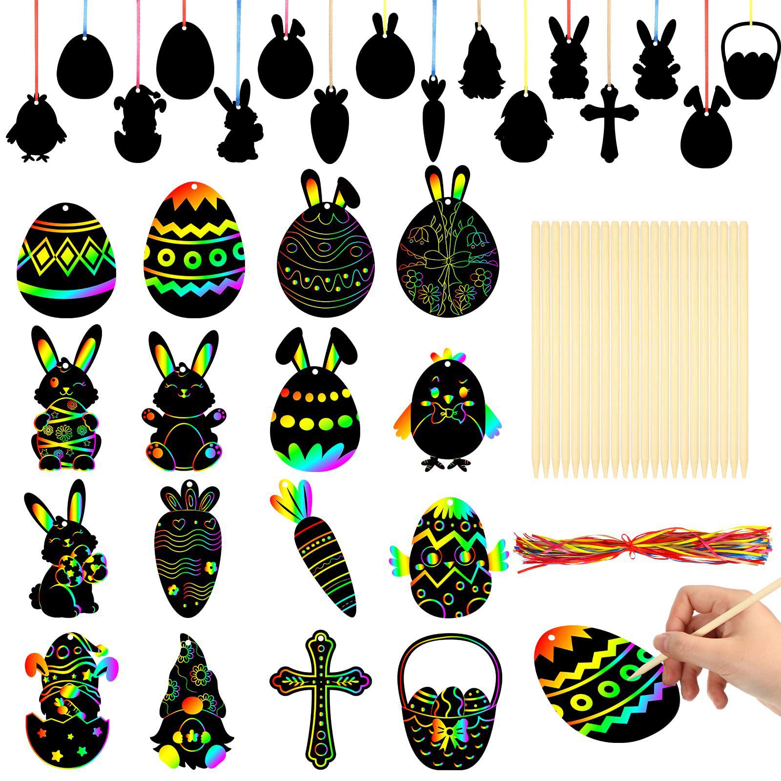 Los niños de la fábrica de comercio exterior rasguño especial-en forma de rasguño pintura papel de rasguño colorido Pascua colgando arte pintura papel al por mayor