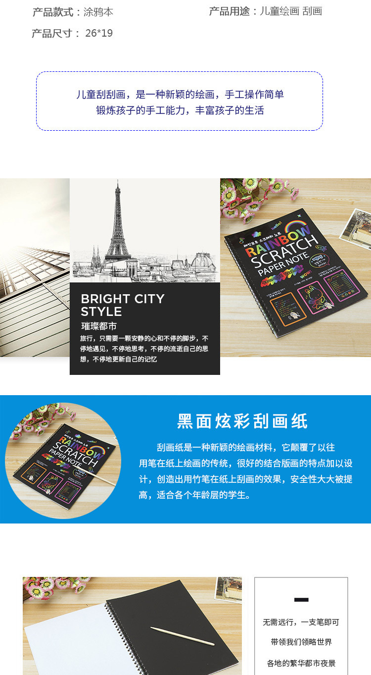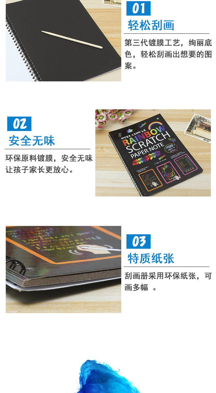 Fábrica de comercio exterior para niños colorido papel educativo DIY pintura creativa hecha a mano gran rasguño libro al por mayor