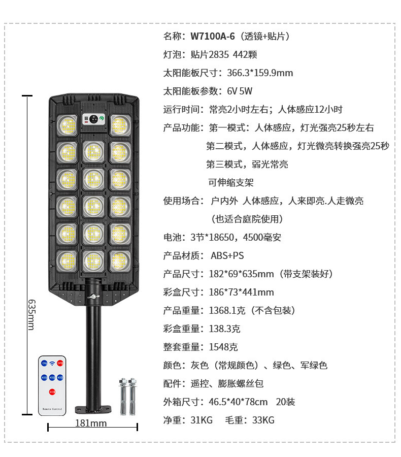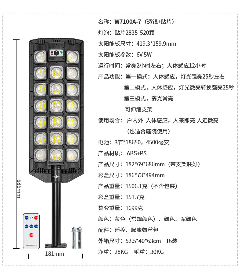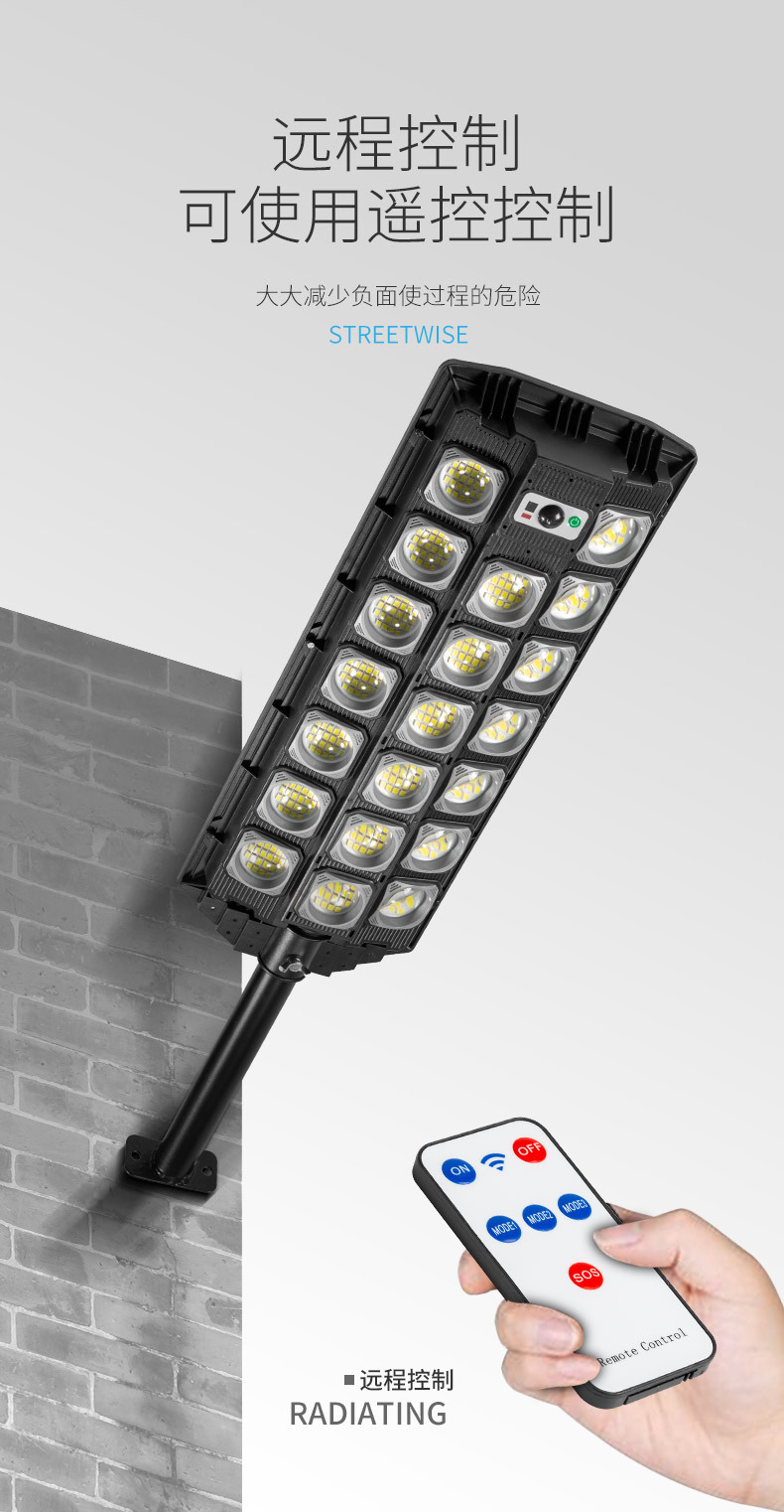 Transfronterizo nuevo LED luz fuerte lámpara de calle pequeña lámpara de calle de tres filas lámpara de jardín solar lámpara de calle de inducción iluminación al aire libre