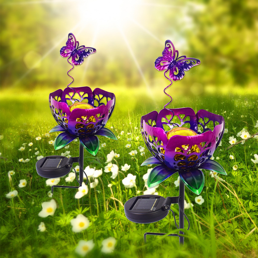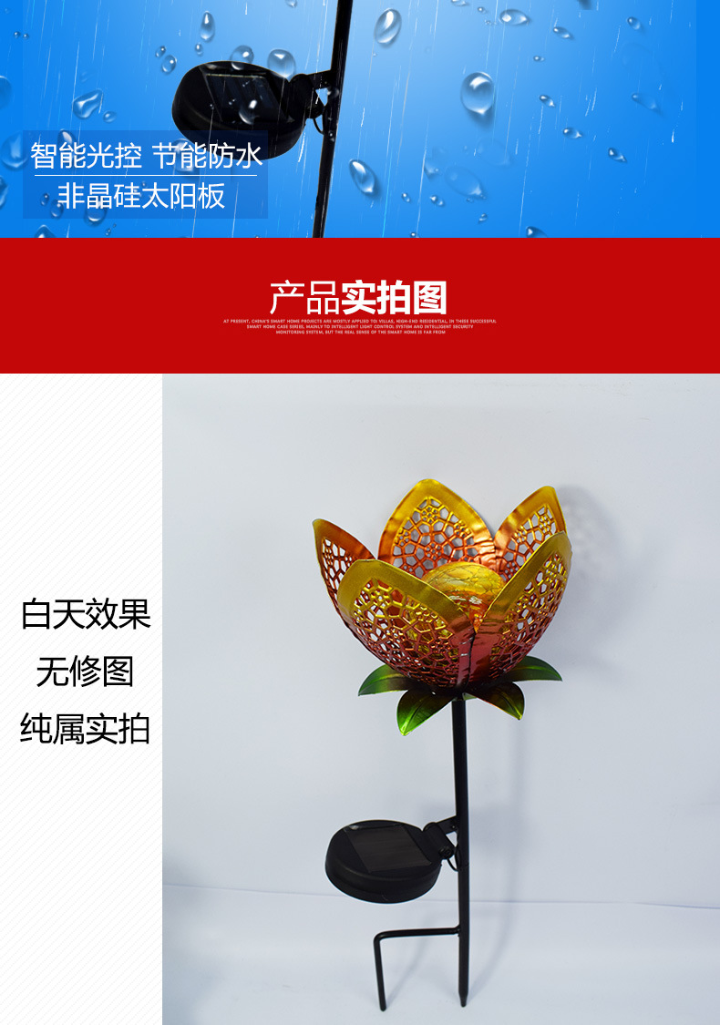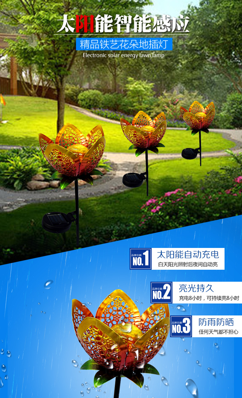 Lámpara de jardín de villa solar Lámpara de decoración de paisaje al aire libre hueca de hierro Lámpara de césped de inserción de flores de simulación