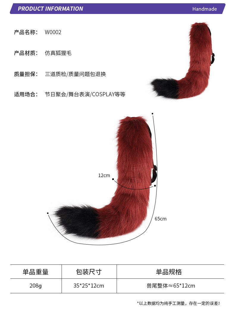 Hecho a mano de peluche cola de bestia cos accesorios cola de zorro cola de perro cola de lobo comic show Live accesorios cola de gato