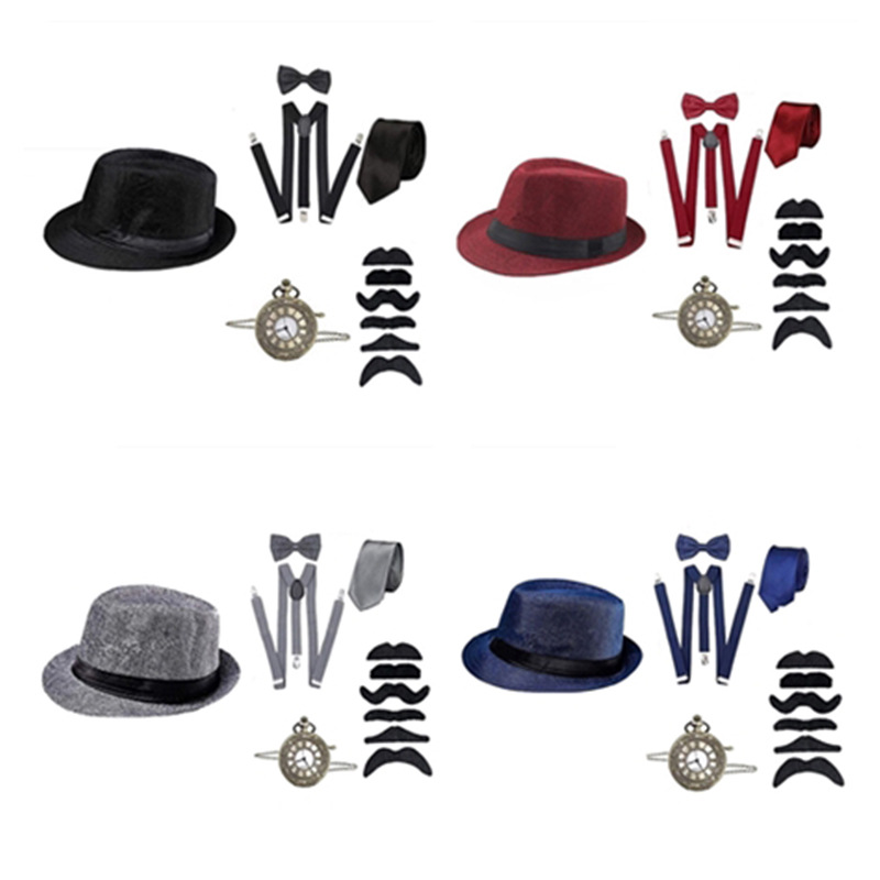 El comercio exterior de 1920 Gatsby bola Partido de los hombres de sombrero superior reloj de bolsillo Correa corbata sombrero traje de una sola pieza de entrega