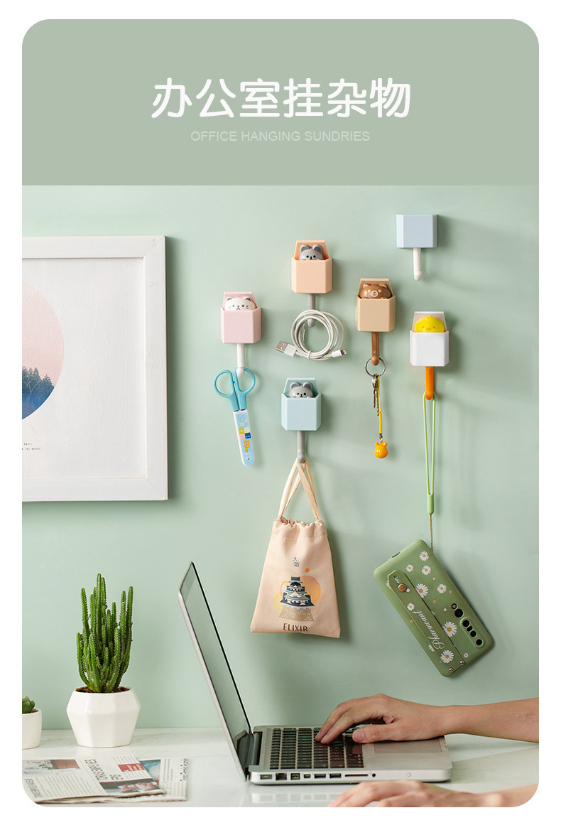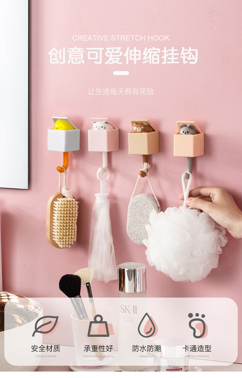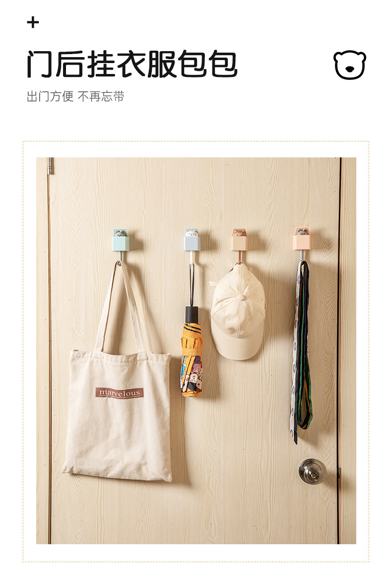Lindo gancho sin costuras fuerte sin punzonado colgante de pared gancho pegajoso gancho de animal llave de pasillo detrás de la puerta gancho de la capa sin clavos