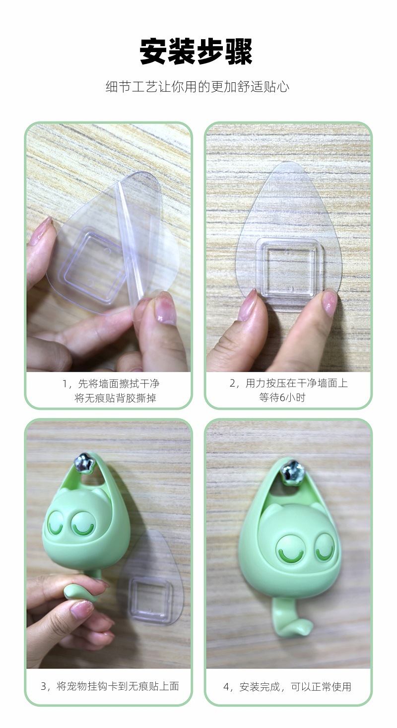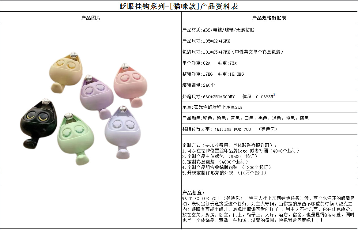 Entrada creativa gancho de ropa llave dibujos animados lindo gato negro abrigo de búho gancho pegajoso sin agujeros gancho de gato parpadeante