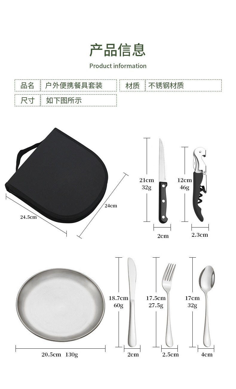 Amazon cuchillo de acero inoxidable, tenedor y cuchara Oro 4-Persona portátil acampar al aire libre barbacoa placa vajilla 20 unidades traje
