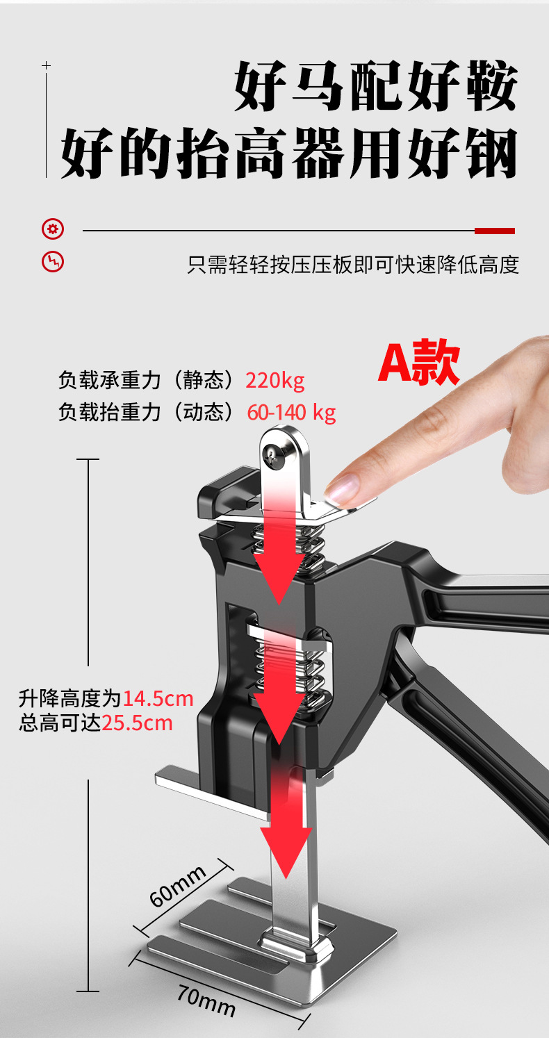 Dispositivo de elevación del regulador de altura del azulejo del hogar Dispositivo de elevación Puerta antirrobo del Gabinete Dispositivo de ajuste fino de altura superior profesional Jack