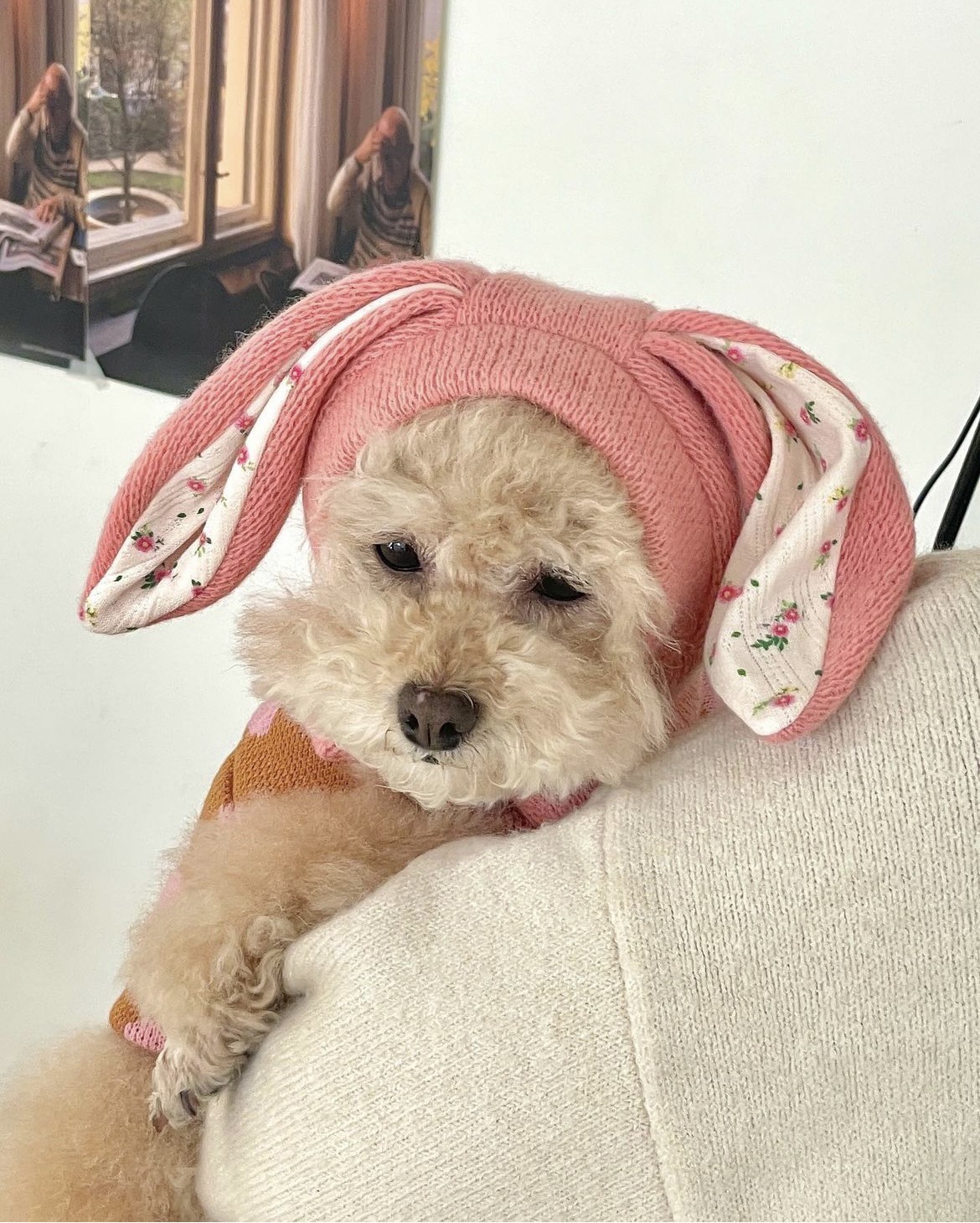 INS nuevo lindo Orejas de conejo mascota sombrero de punto otoño e invierno cálido sombrero gato lindo perro decorativo mascota