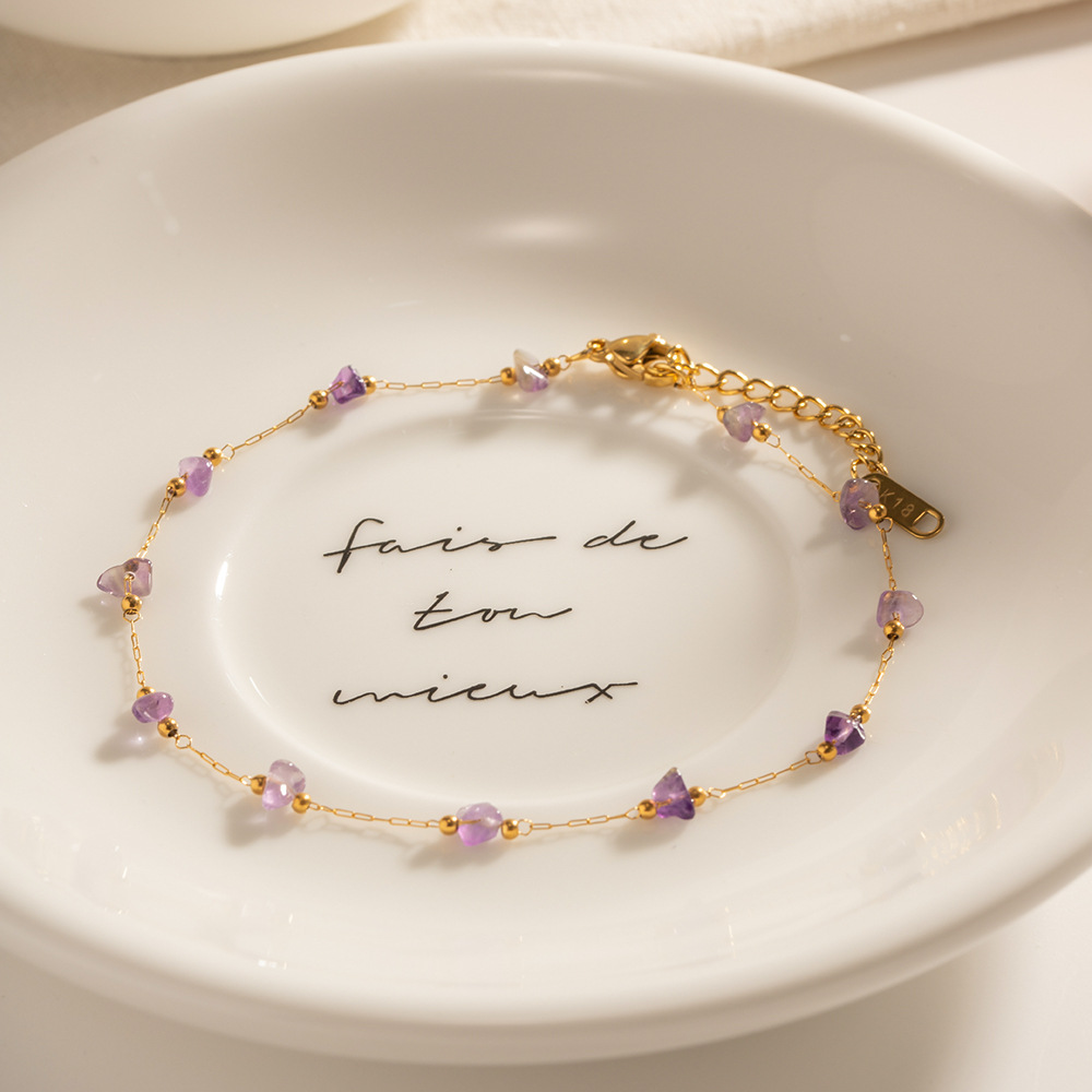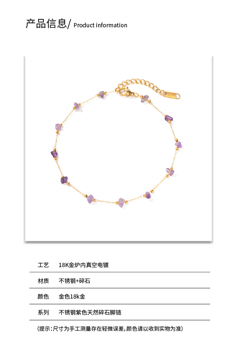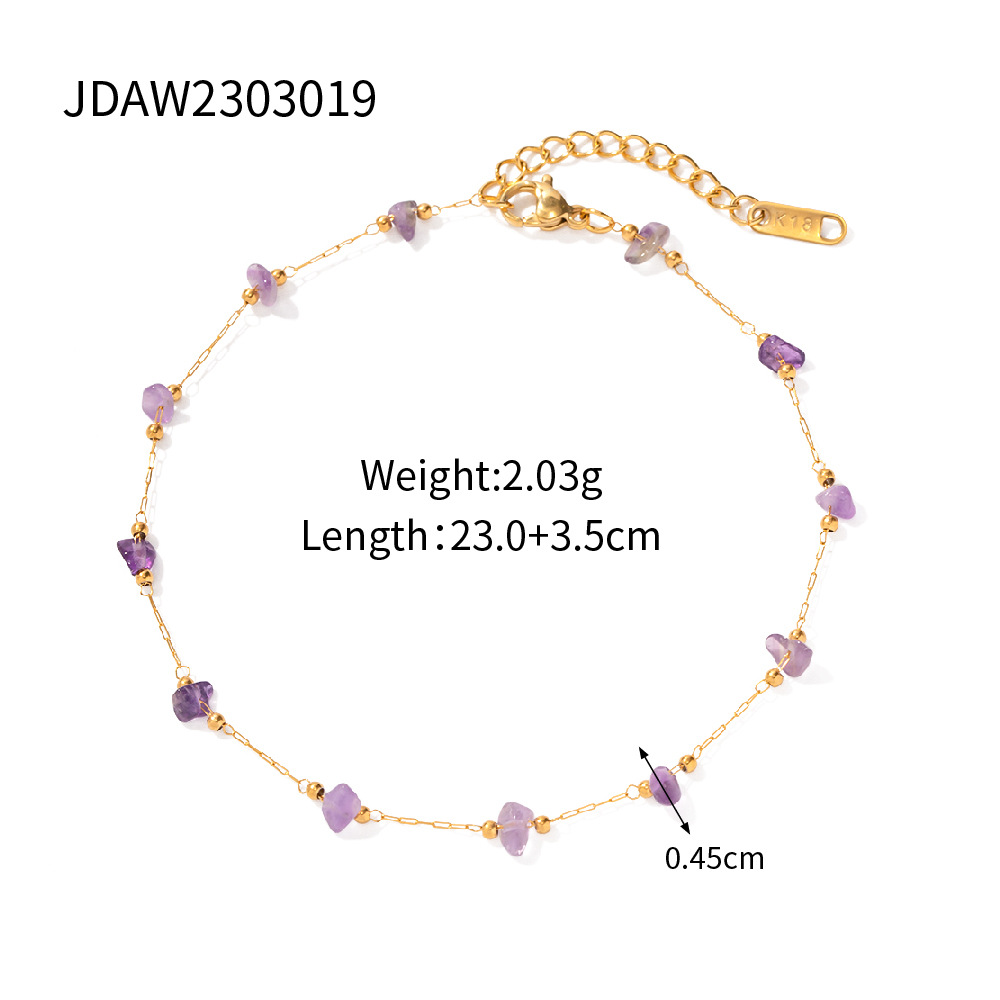 18K oro Acero inoxidable púrpura Piedra Natural grava tobillera popular europeo y americano moda retro verano joyería para las mujeres