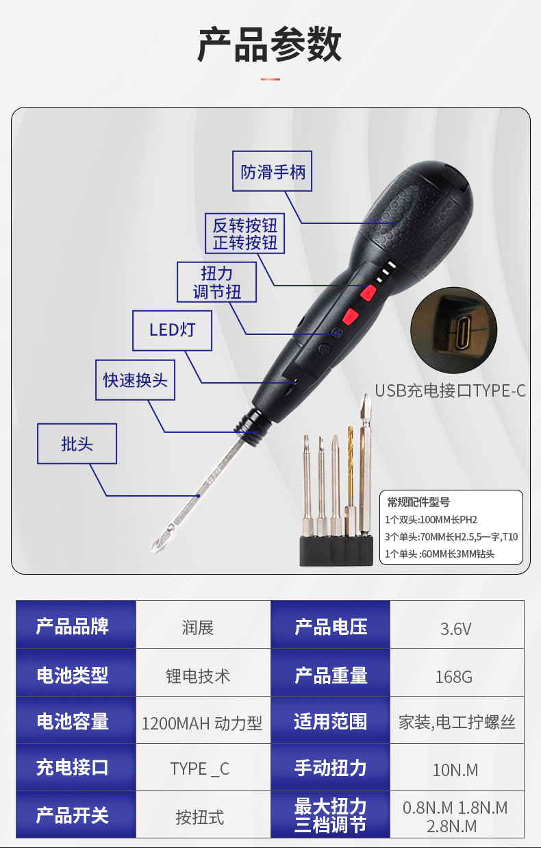 Manual eléctrico integrado recargable destornillador eléctrico destornillador con ajuste de par mango recto destornillador eléctrico XZ1104