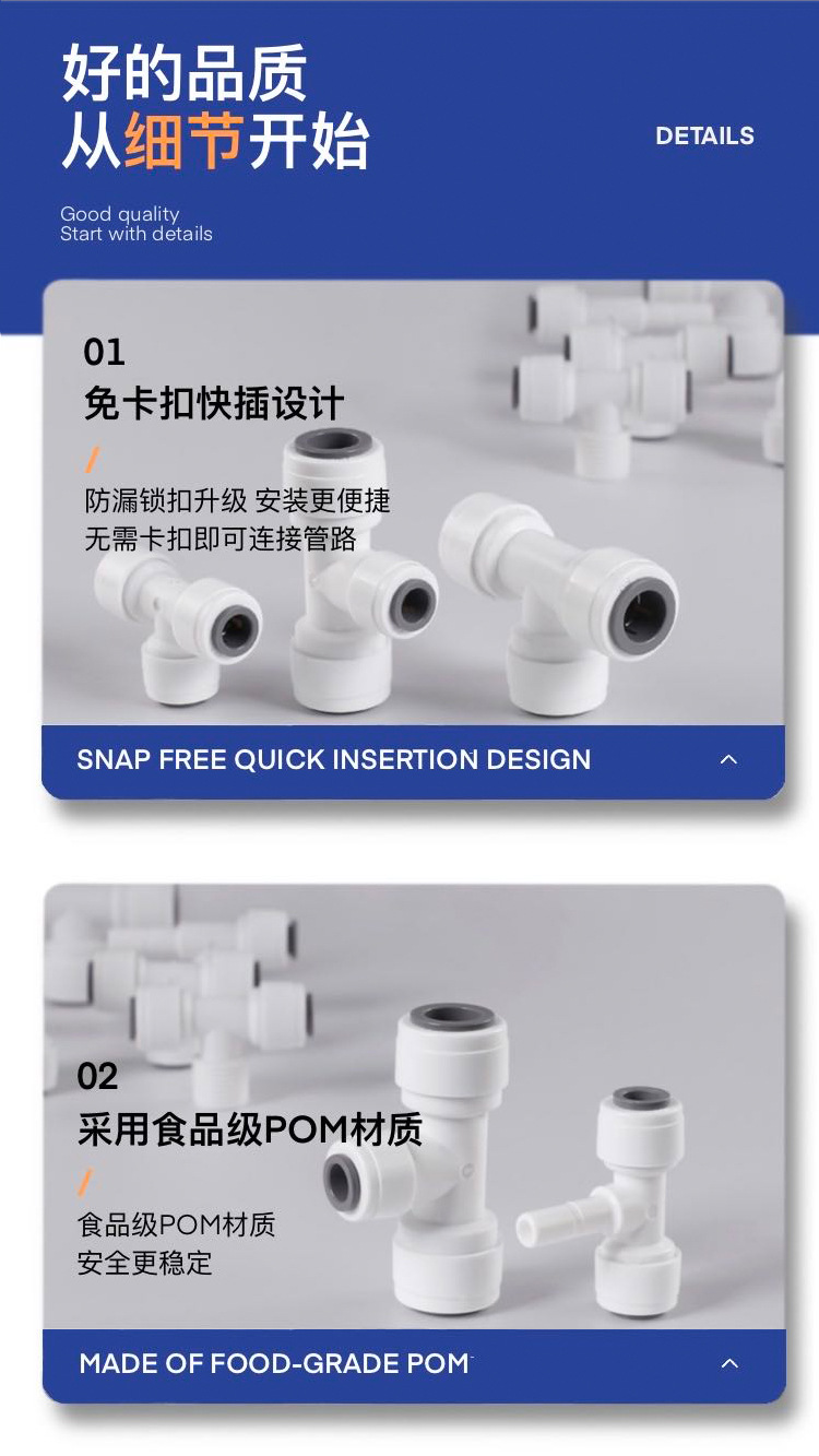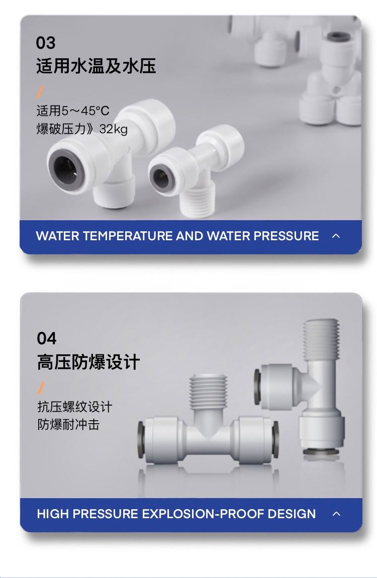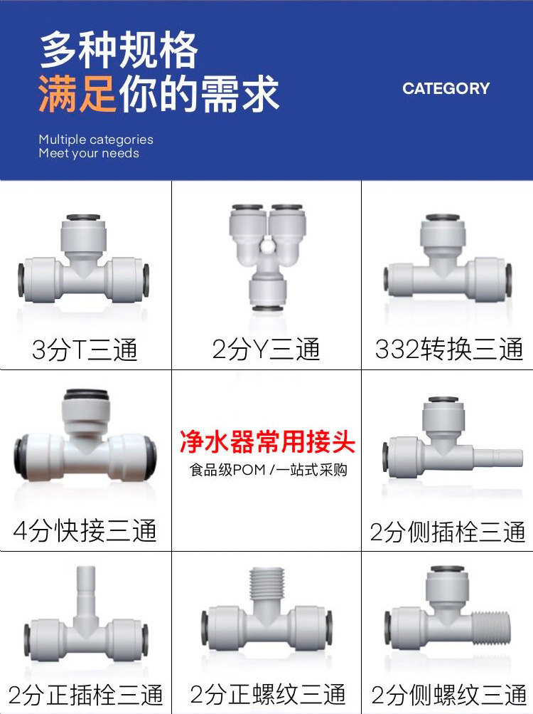 Purificador de agua conector Tee 2 puntos 3 puntos conector de accesorios de tubería de agua purificador de agua doméstico 3 puntos a 2 puntos conector Colección completa