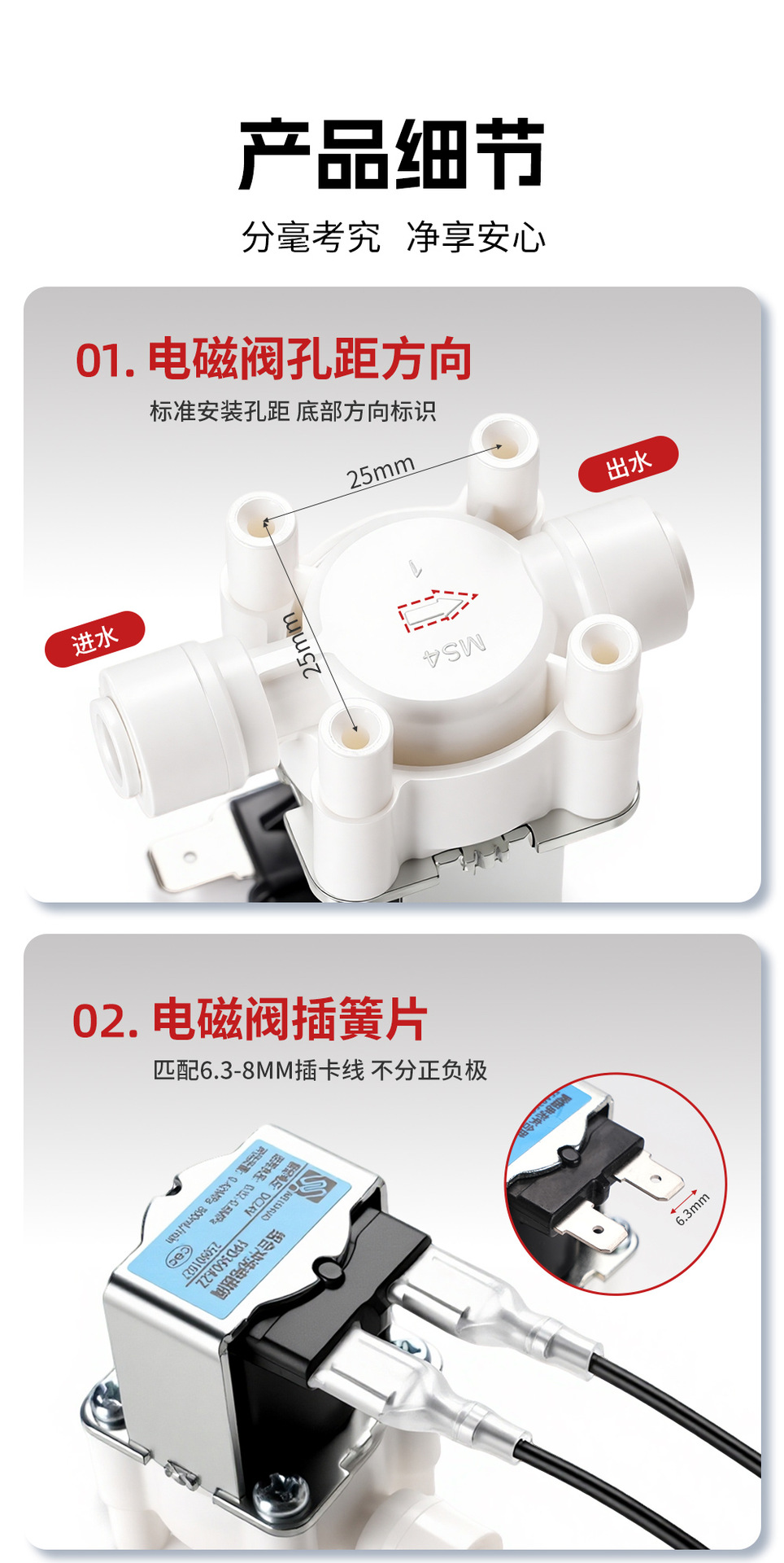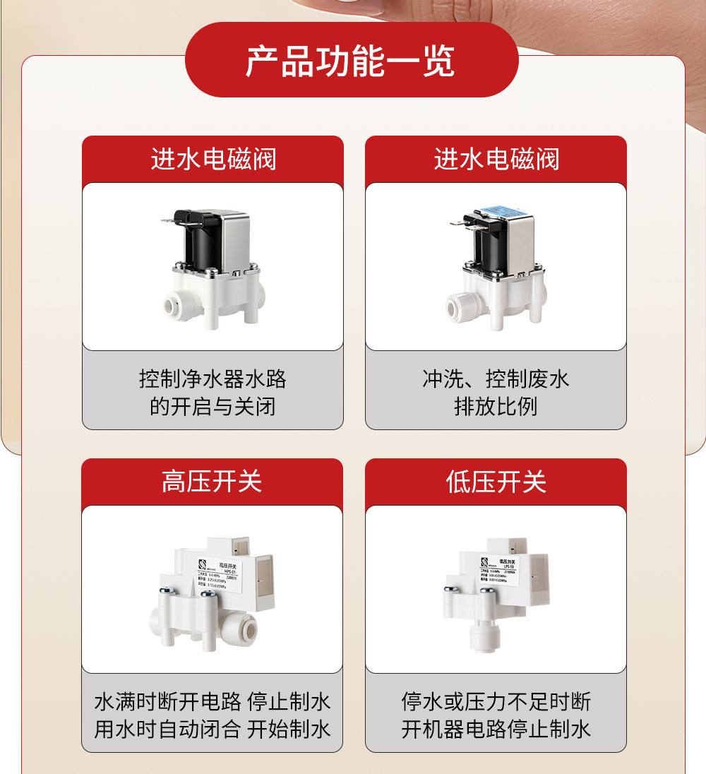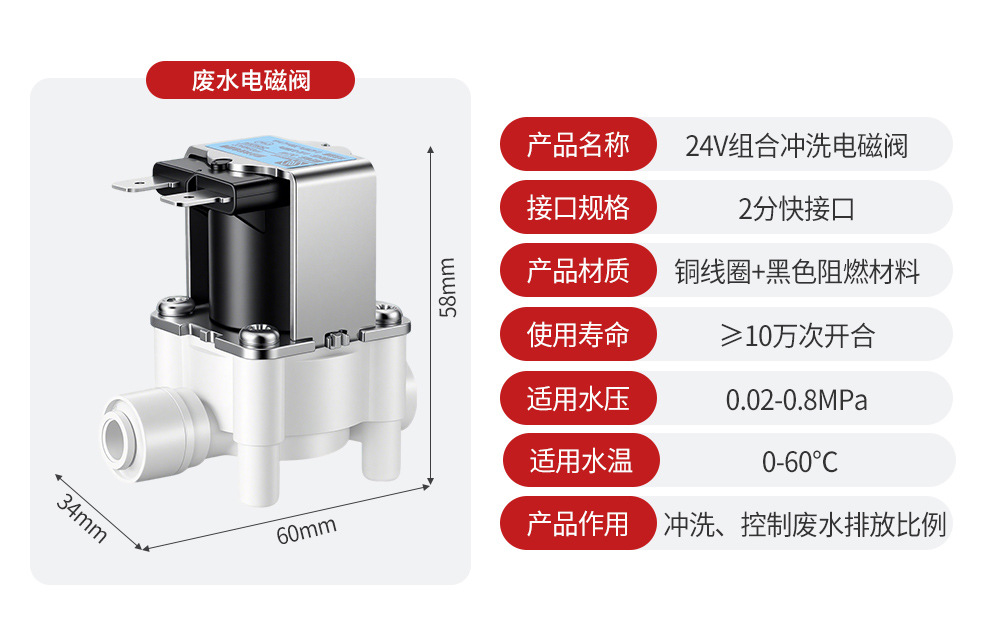 Máquina de agua pura ro máquina purificador de agua accesorios 2 puntos 3 puntos enchufe rápido válvula solenoide de entrada de agua combinación válvula solenoide de aguas residuales 24V