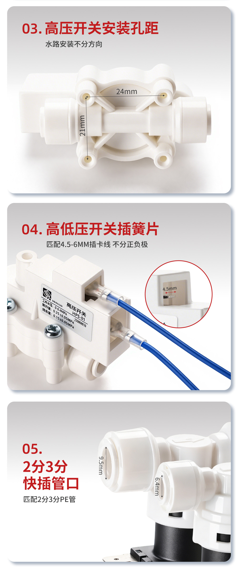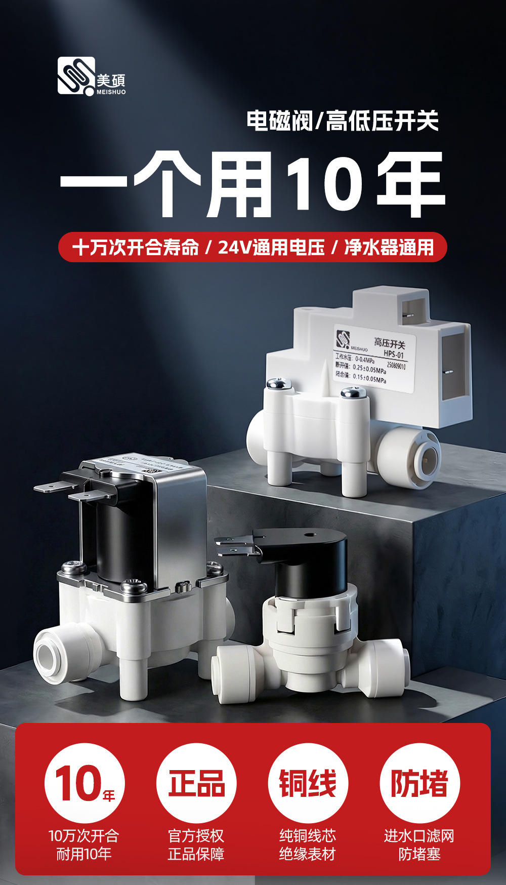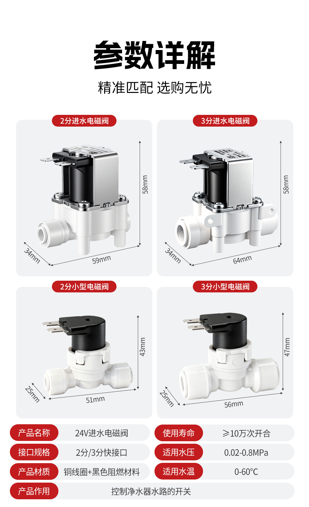 Máquina de agua pura ro máquina purificador de agua accesorios 2 puntos 3 puntos enchufe rápido válvula solenoide de entrada de agua combinación válvula solenoide de aguas residuales 24V