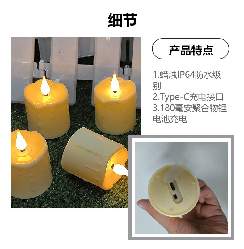 Luz de vela LED de vela electrónica impermeable Decoración de la boda de Navidad Luz de noche de mesa de cera de té recargable USB de Halloween