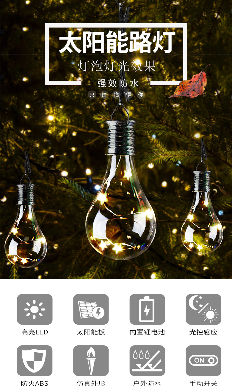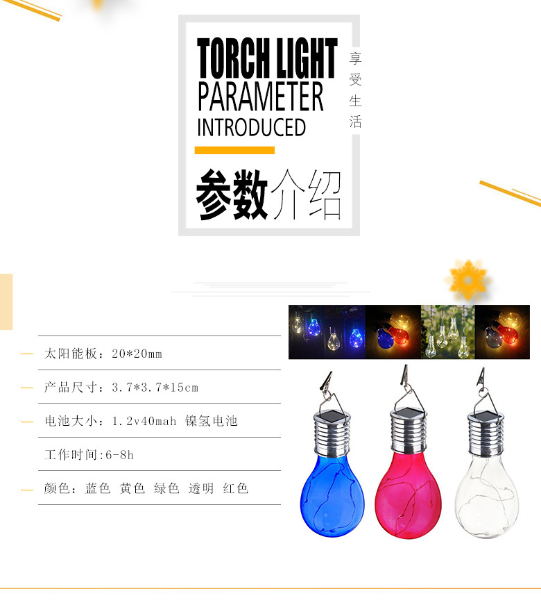 Transfronterizo solar al aire libre color decorativo bombilla lámpara solar LED vacaciones color lámpara colgante Lámpara decorativa
