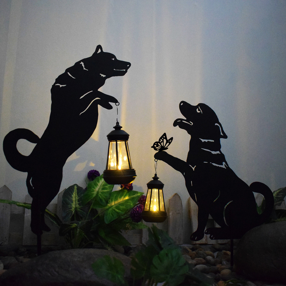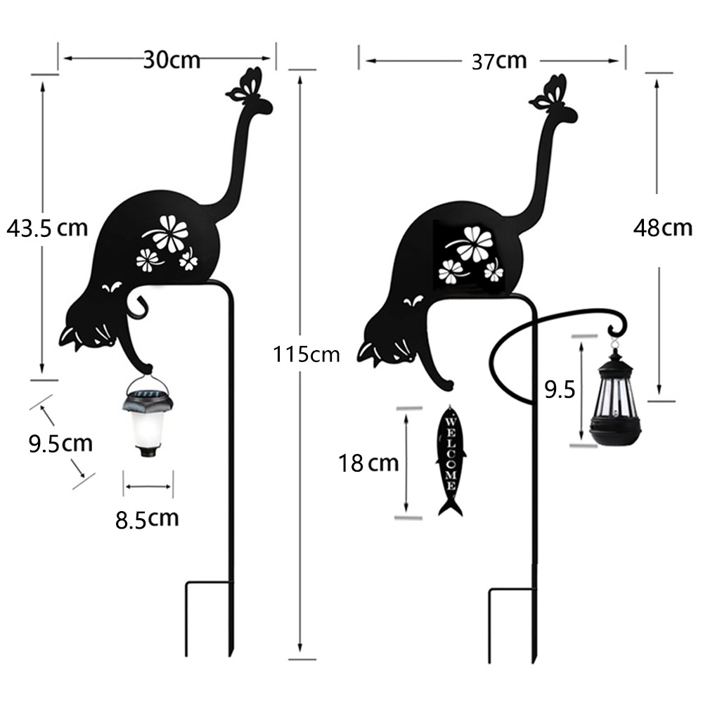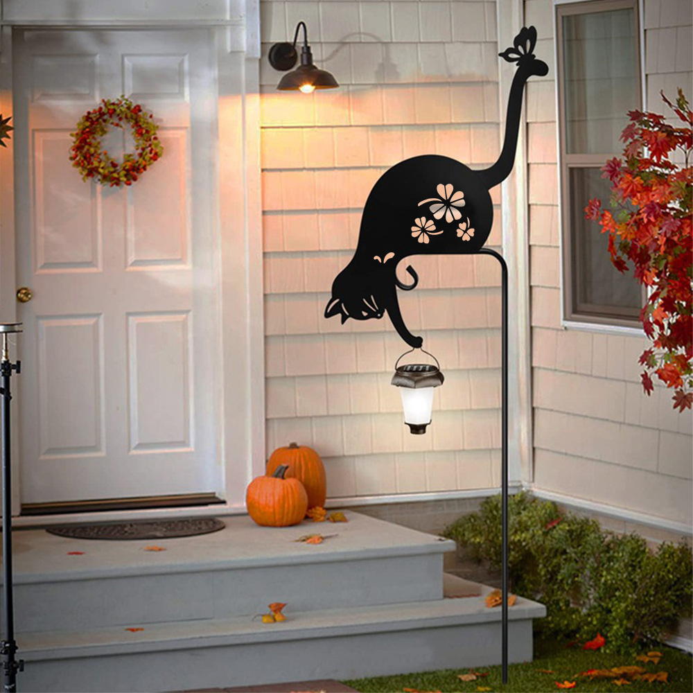 Hogar transfronterizo al aire libre impermeable inserción de césped hierro forjado gato animal modelado jardín jardín jardín decoración luz solar