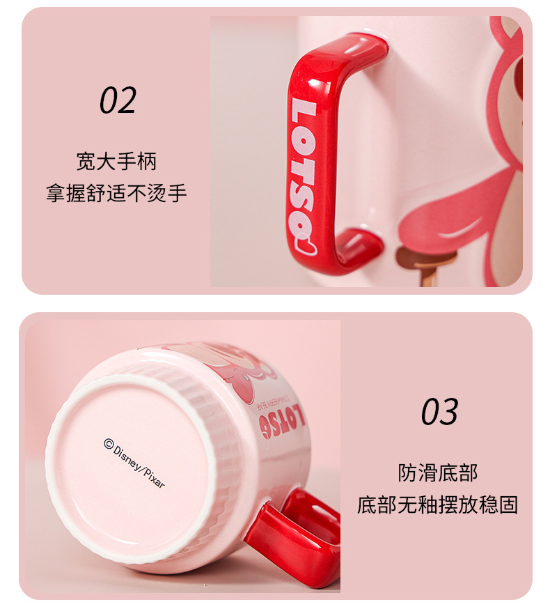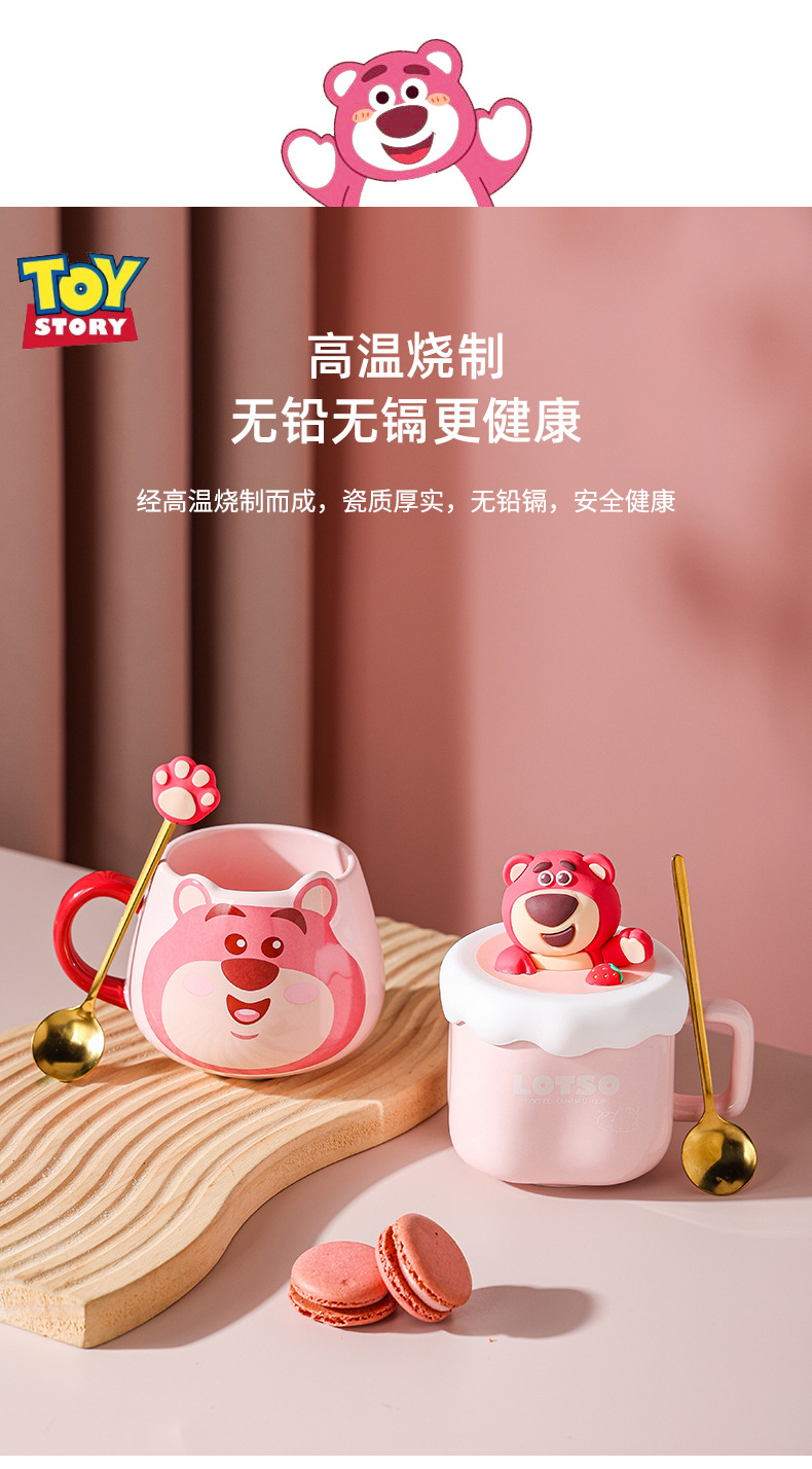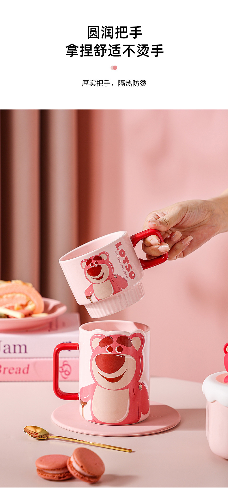 Disney Cartoon Strawberry Bear Ceramica Forma linda Taza de vientre grande Caja de regalo Regalo de negocios Compañero de mano al por mayor