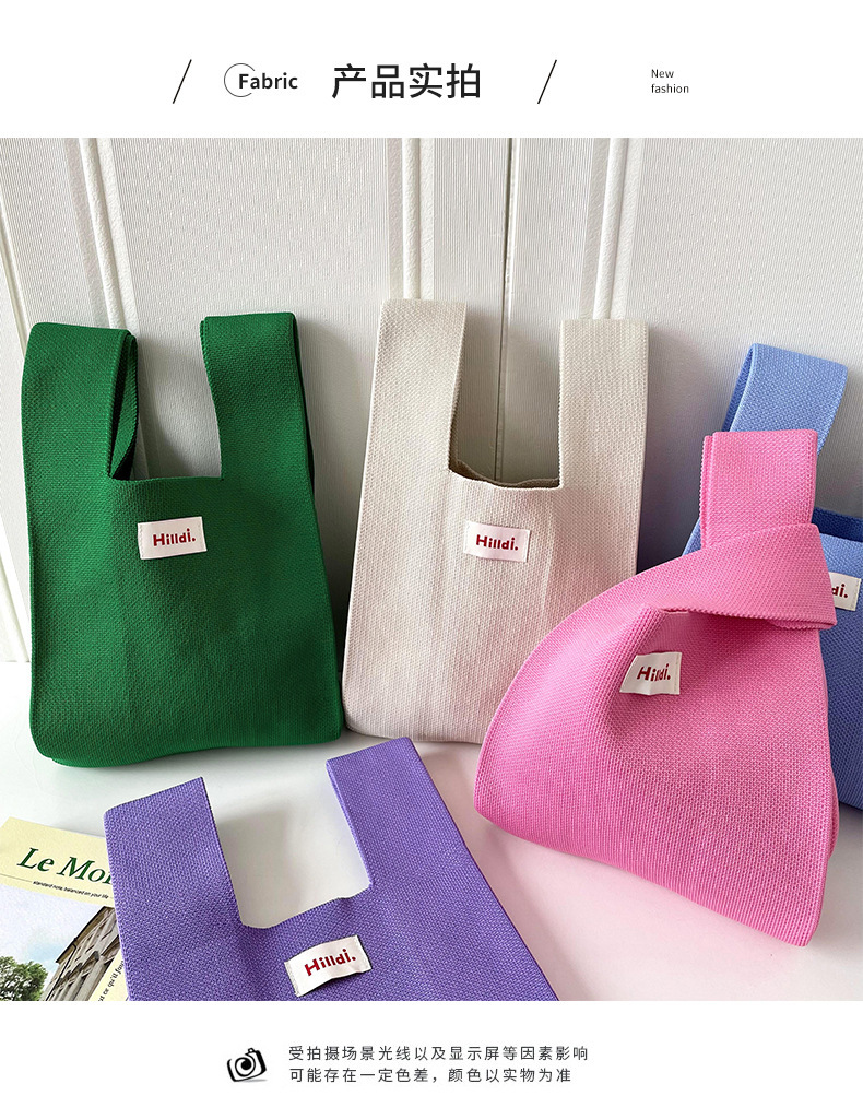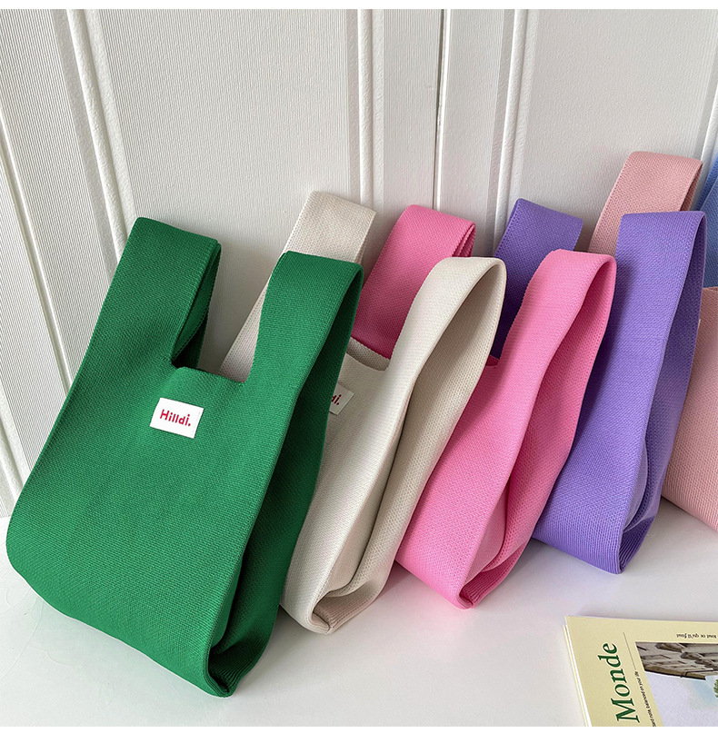 Bolso de las mujeres de estilo coreano diseño de nicho de color caramelo de punto bolso de mano versátil color sólido de gran capacidad bolso de la muñeca