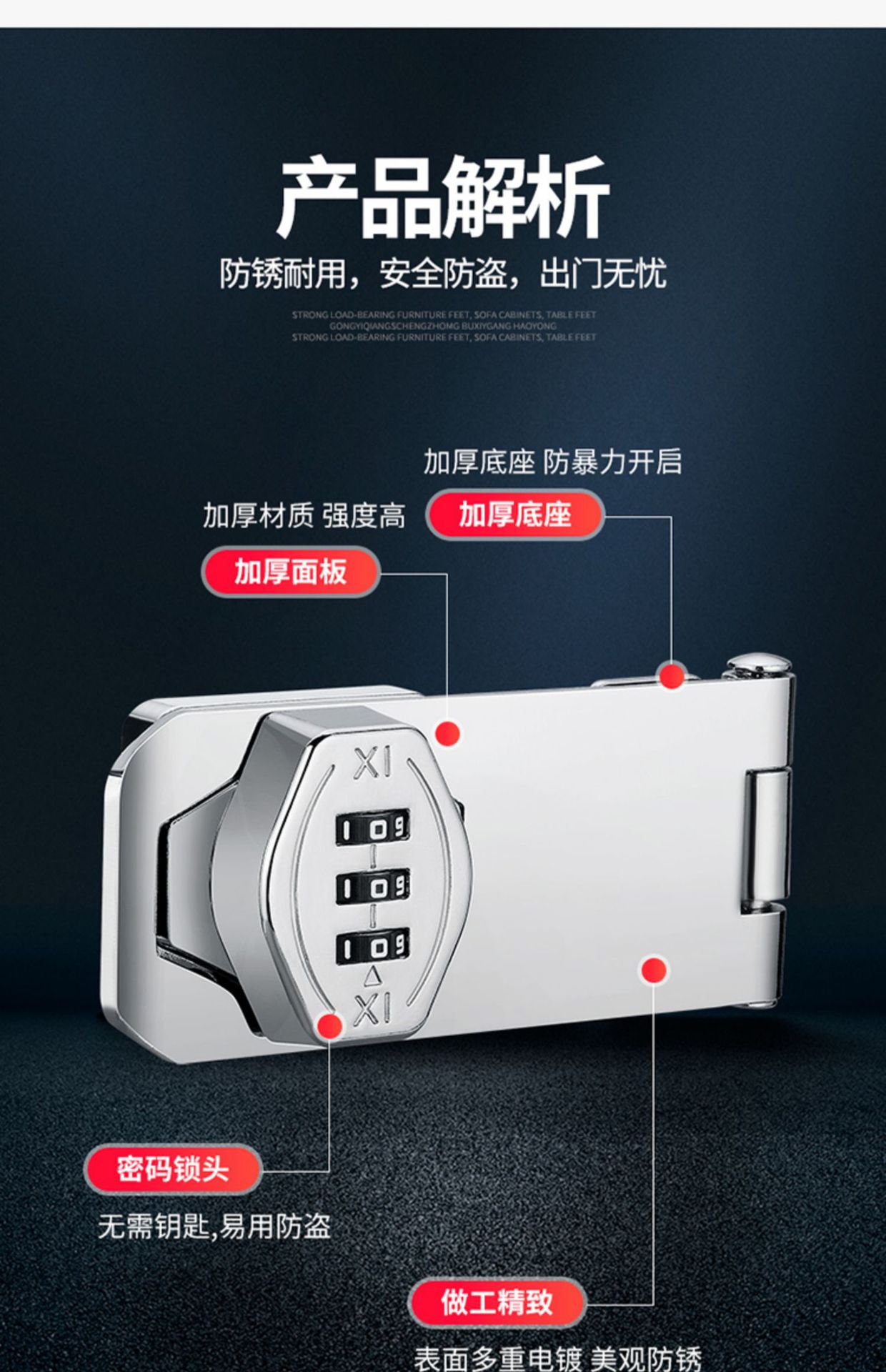 ![Bloqueo de contraseña de película negativa de dos agujeros de 3 pulgadas plata brillante [Instalación de tornillo]](https://cbu01.alicdn.com/img/ibank/O1CN01waEzYV29PX7tKKSii_!!2213258368060-0-cib.jpg)
