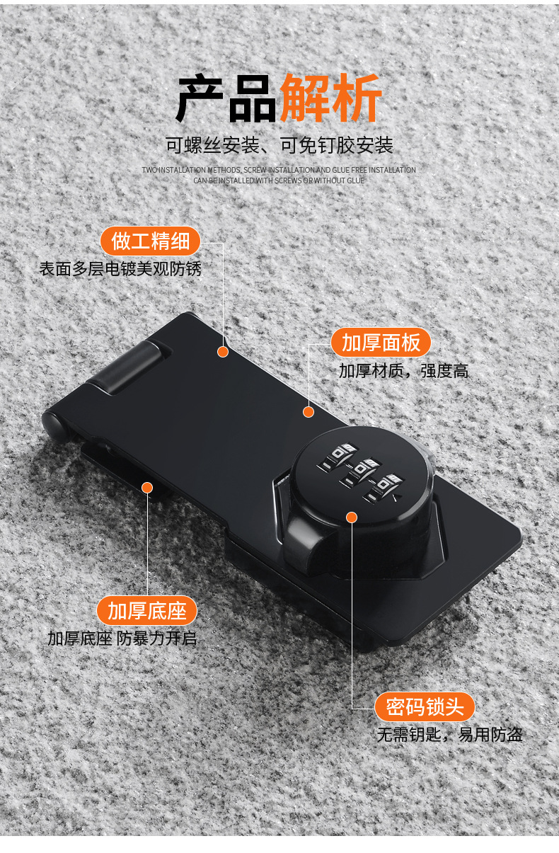![Plata de bloqueo de contraseña de tres orificios de 4,5 pulgadas [pegamento/tornillo sin clavos gratis]](https://cbu01.alicdn.com/img/ibank/O1CN01Ydp1Be1buxOukHx8I_!!2204169023526-0-cib.jpg)