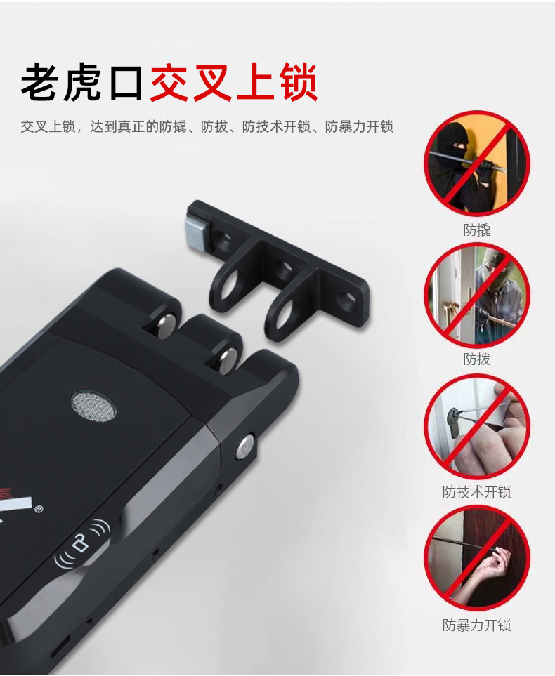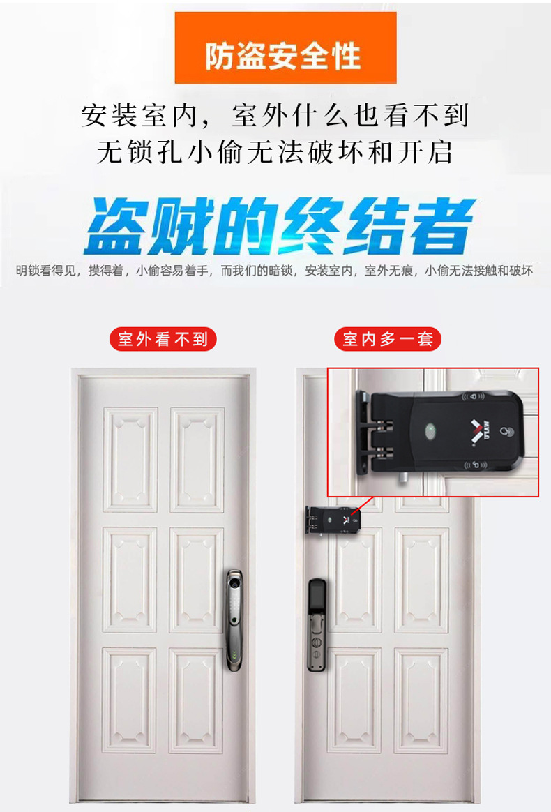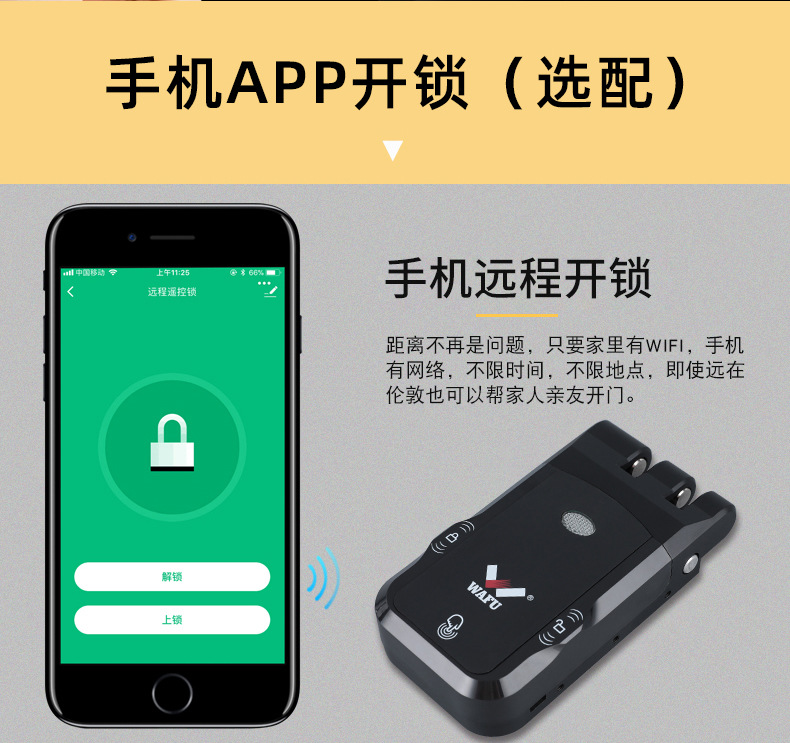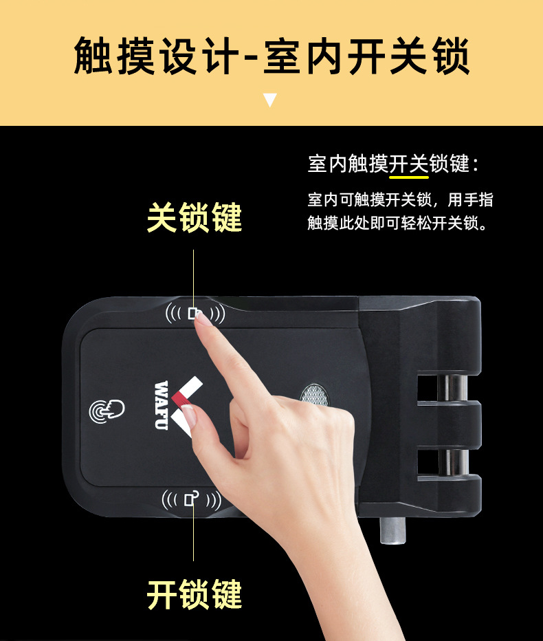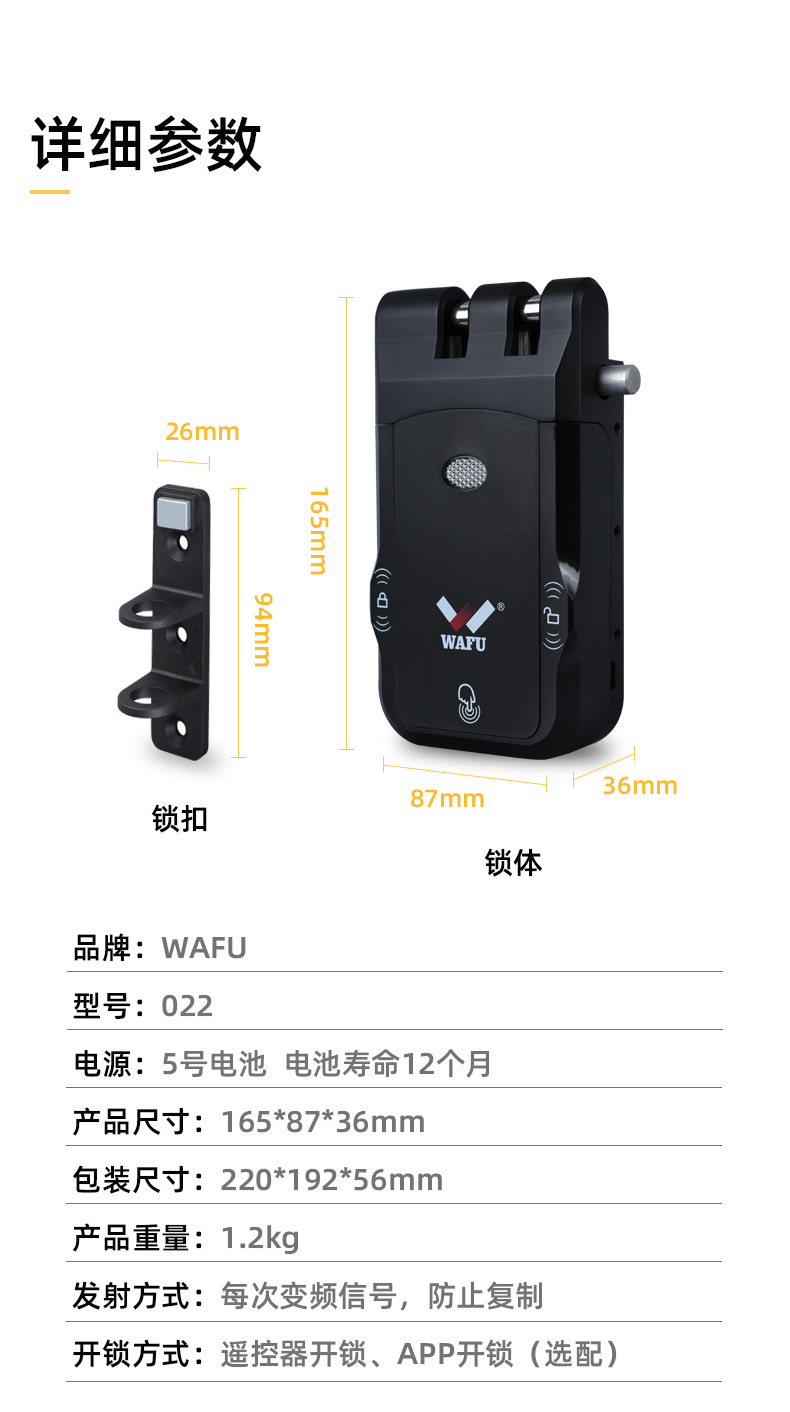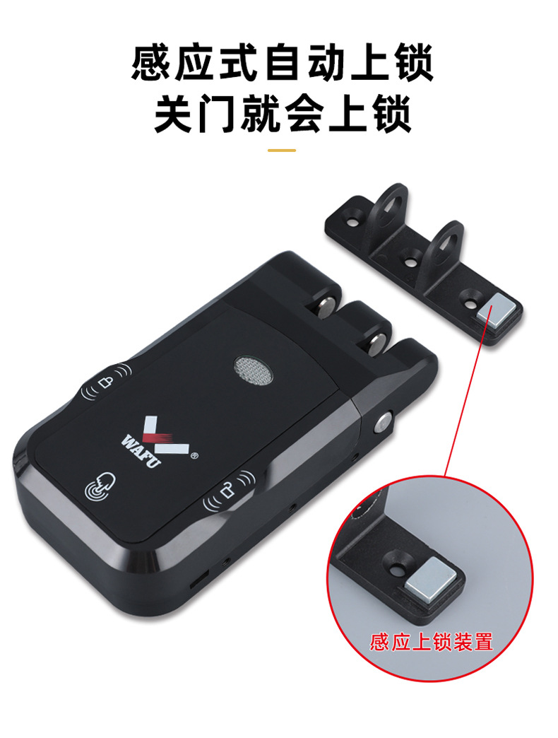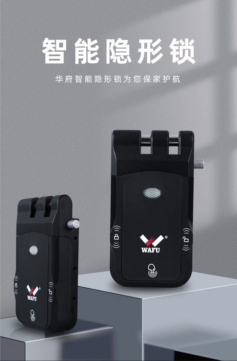 Cerradura de puerta antirrobo con control remoto invisible sin taladro para uso doméstico, con diseño de doble circuito y doble motor, de WAFU para comercio transfronterizo.
