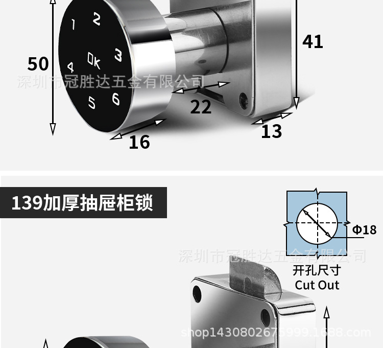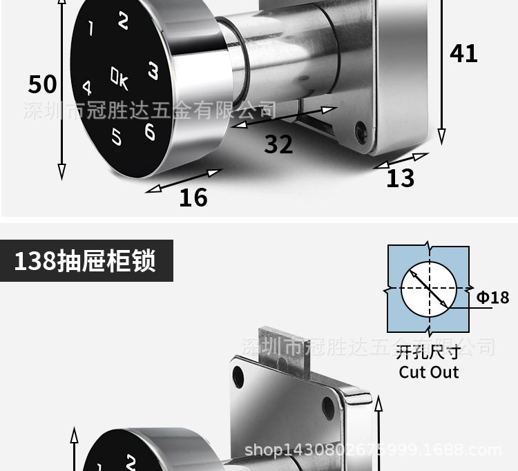 | Especificaciones | 103-20mm contraseña inteligente,103-30mm Bloqueo de contraseña inteligente,138-22 cerradura de cajón inteligente,138-32 cerradura de cajón inteligente,139-22 cerradura de cajón inteligente,139-32 cerradura de cajón inteligente |