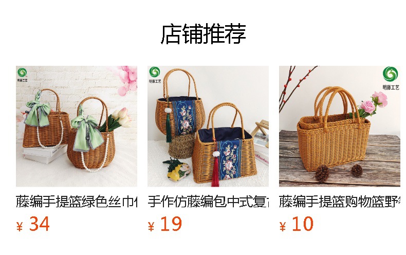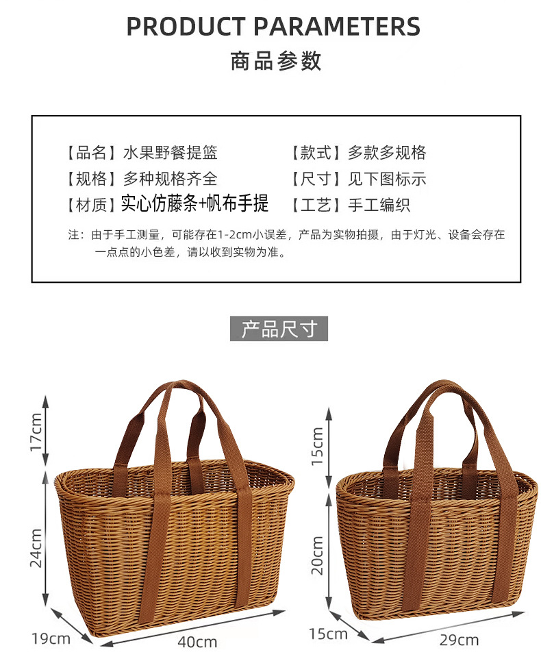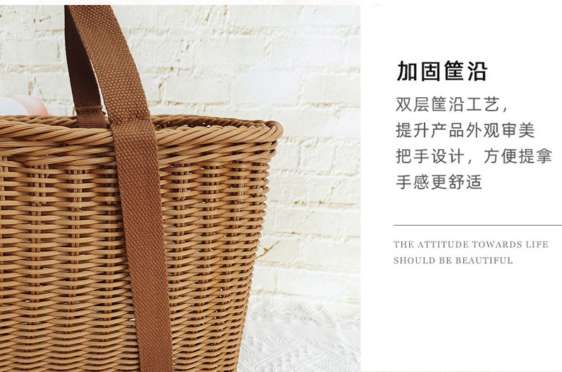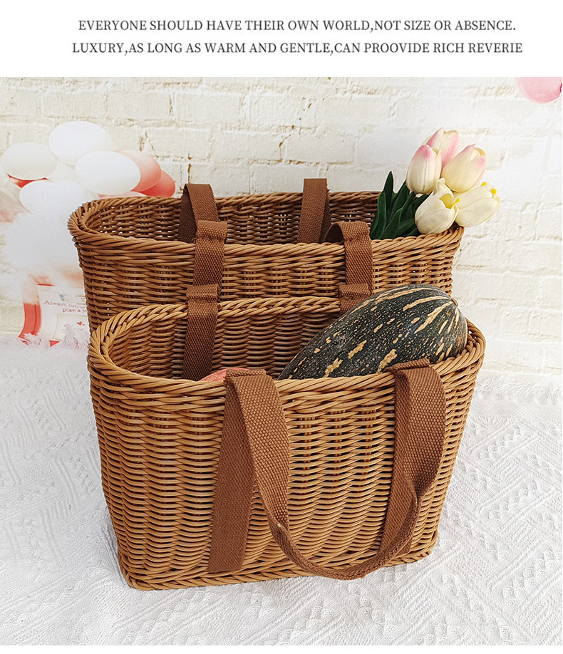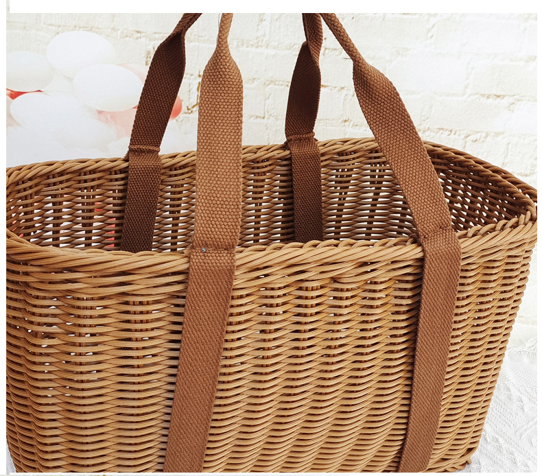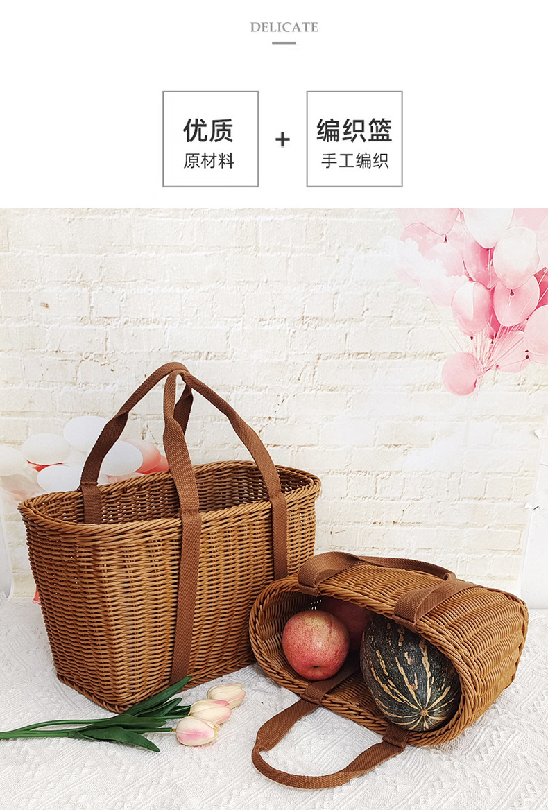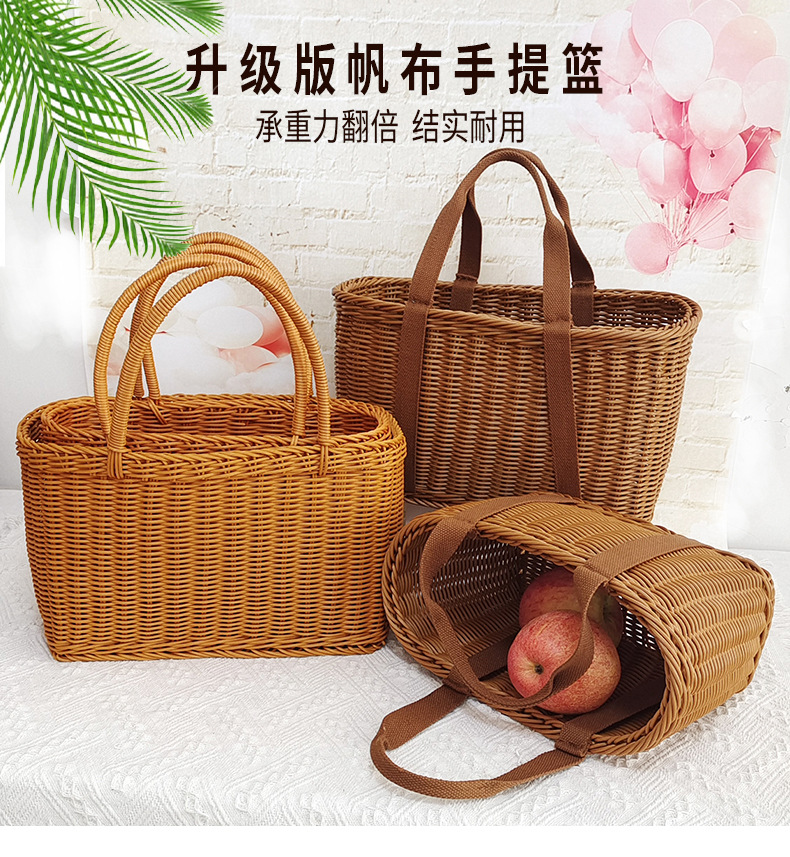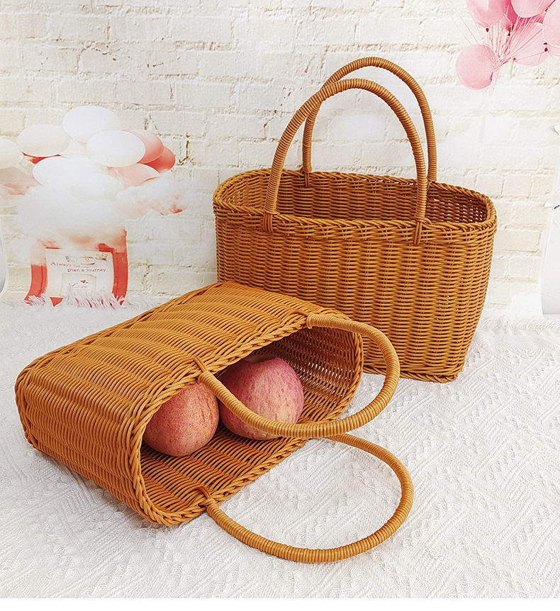 Cesta de mano de fruta de ratán Cesta de compras de supermercado Cesta de ratán de mano de picnic Cesta de tejido de ratán de plástico