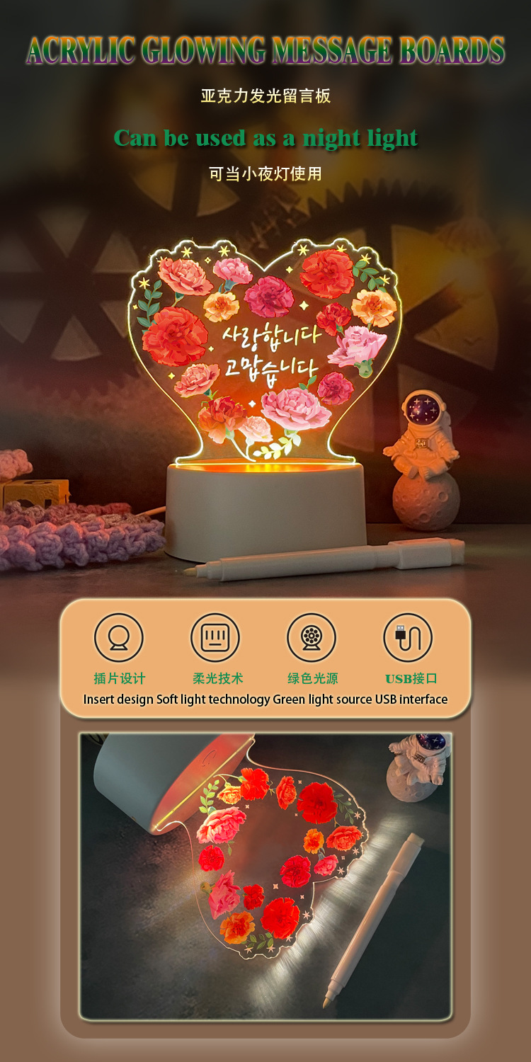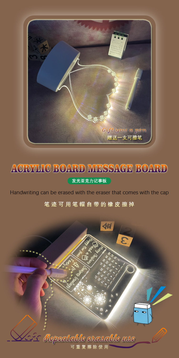 Tablero de notas de acrílico transparente tablero de escritorio tablero luminoso tablero de mensajes tablero de escritura en el hogar tablero de notas de pizarra