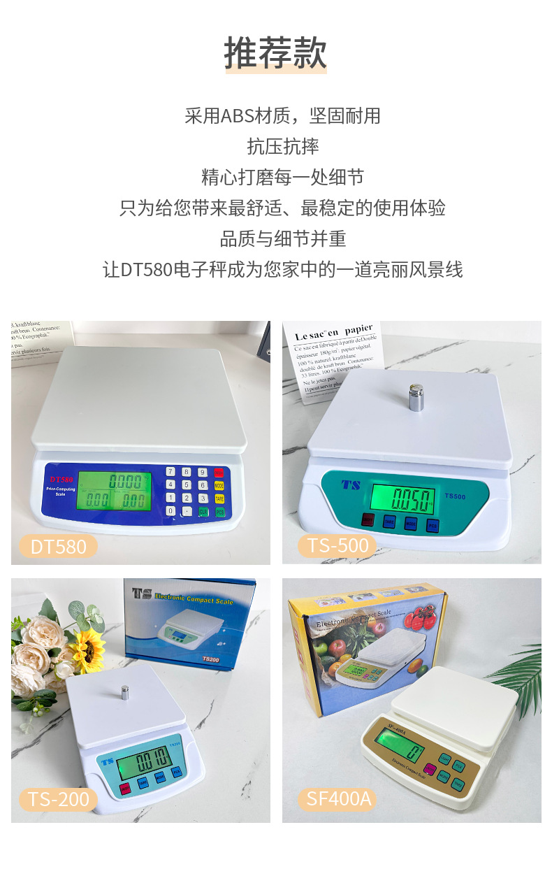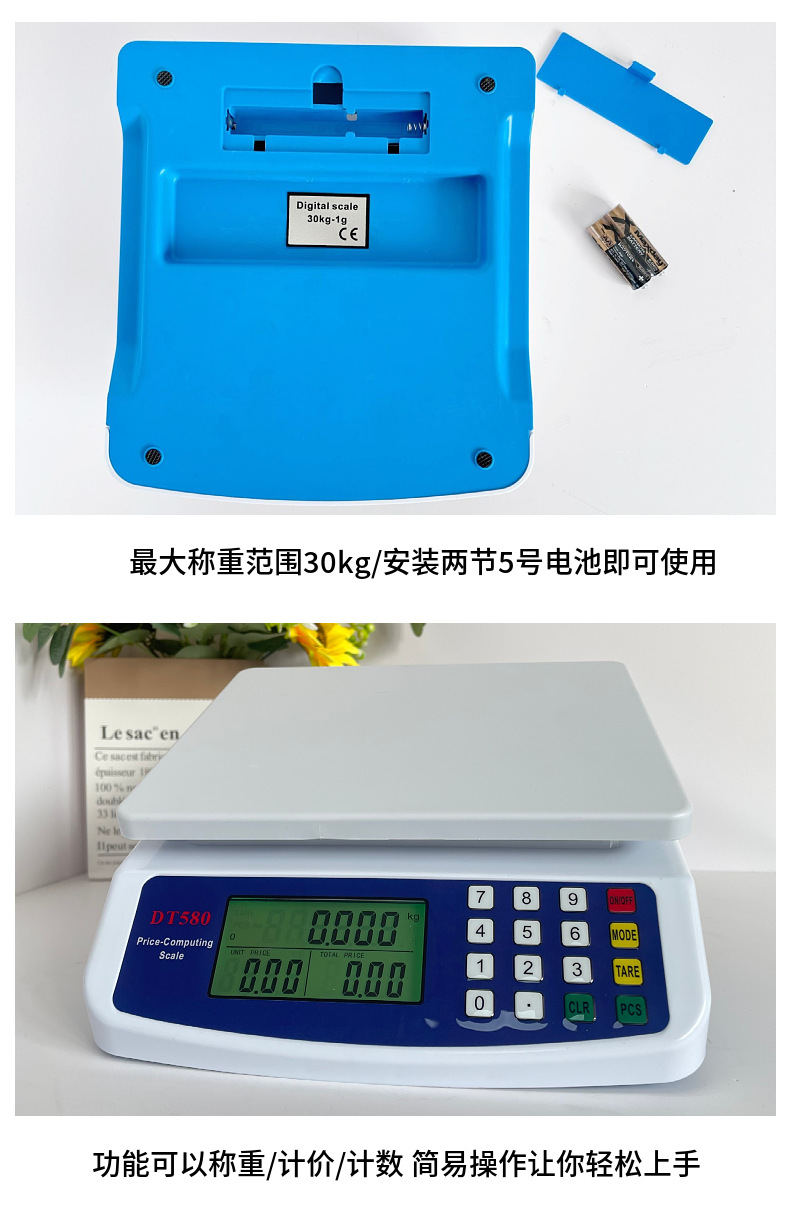 Comercio exterior DT580 Escala de cocina 30kg escala de precios kitchenscale Escala electrónica pequeña escala de gramo Escala de plataforma doméstica