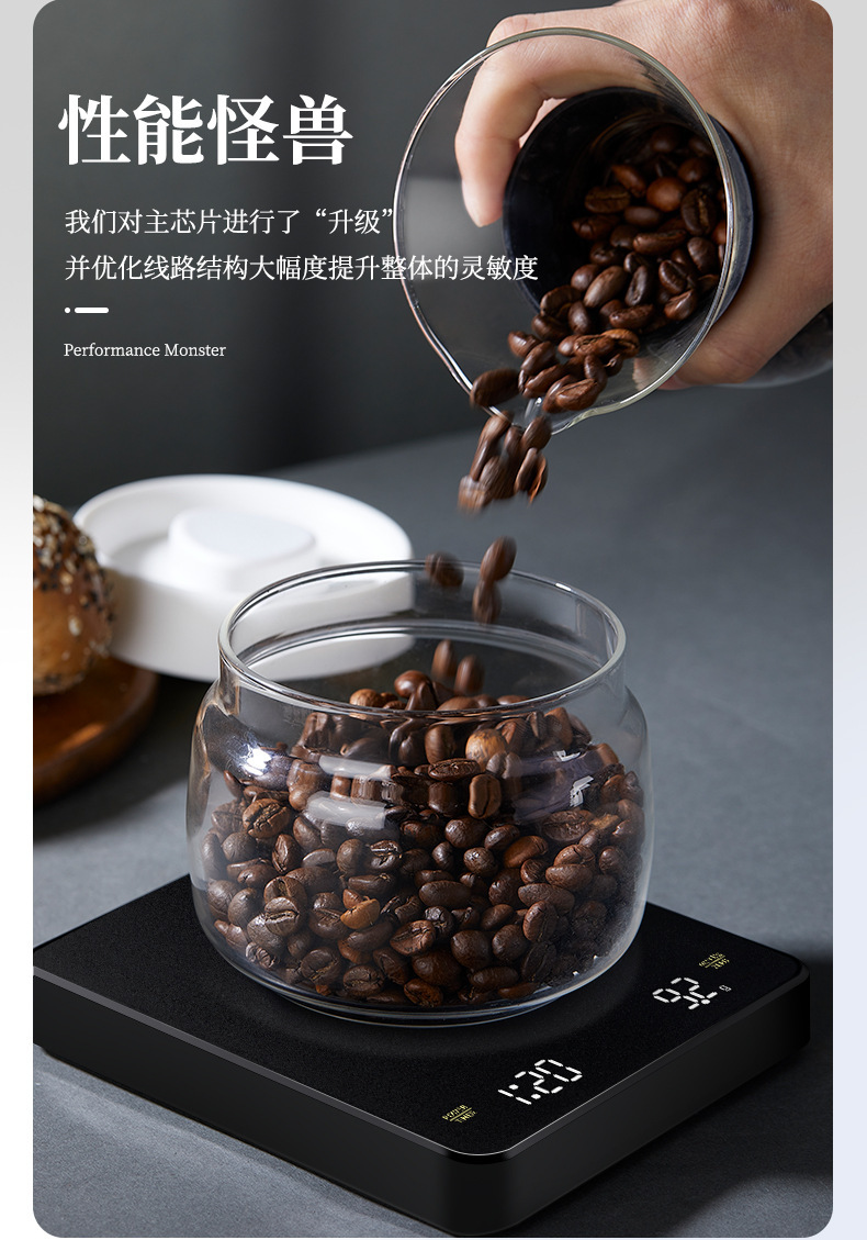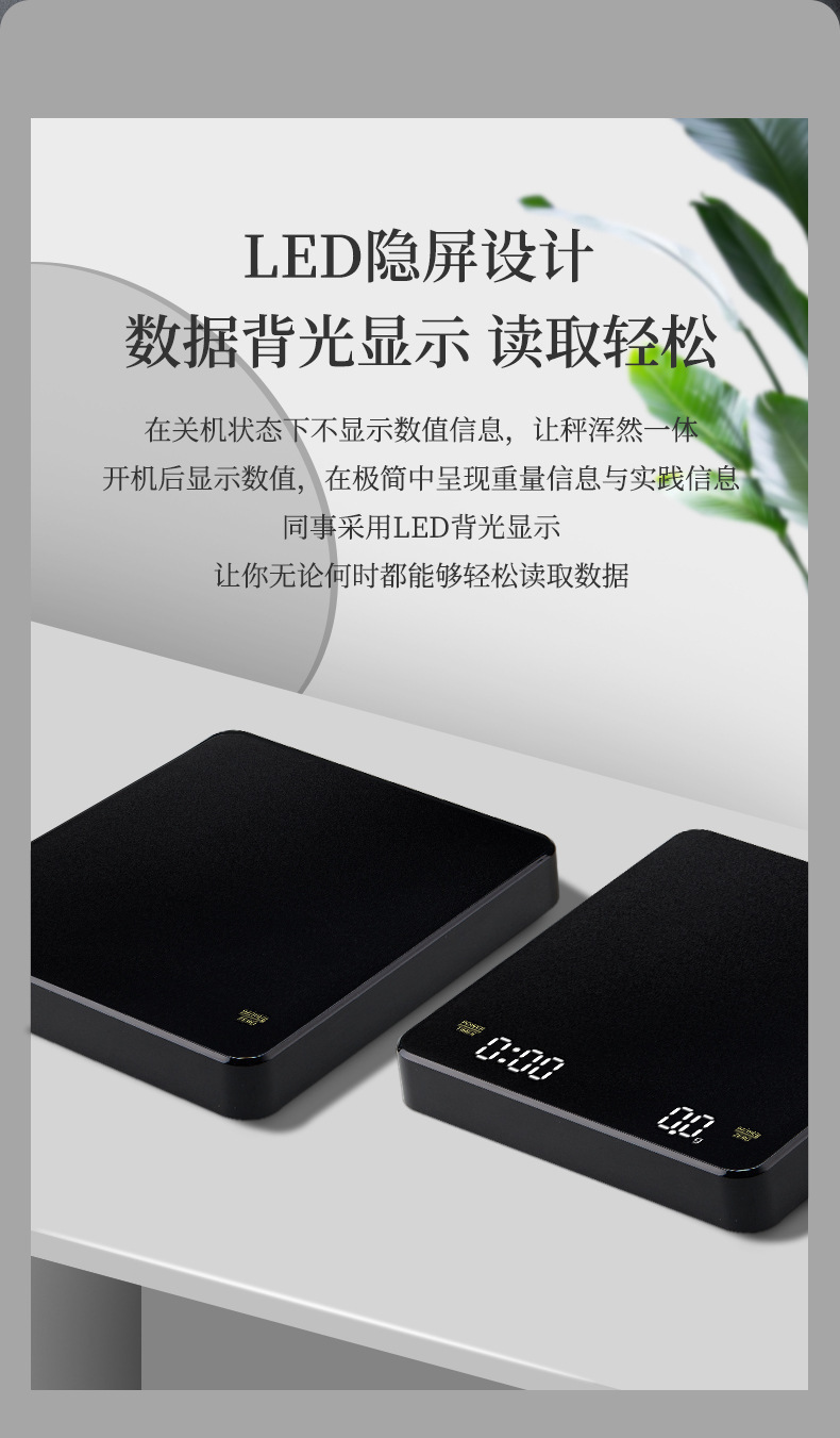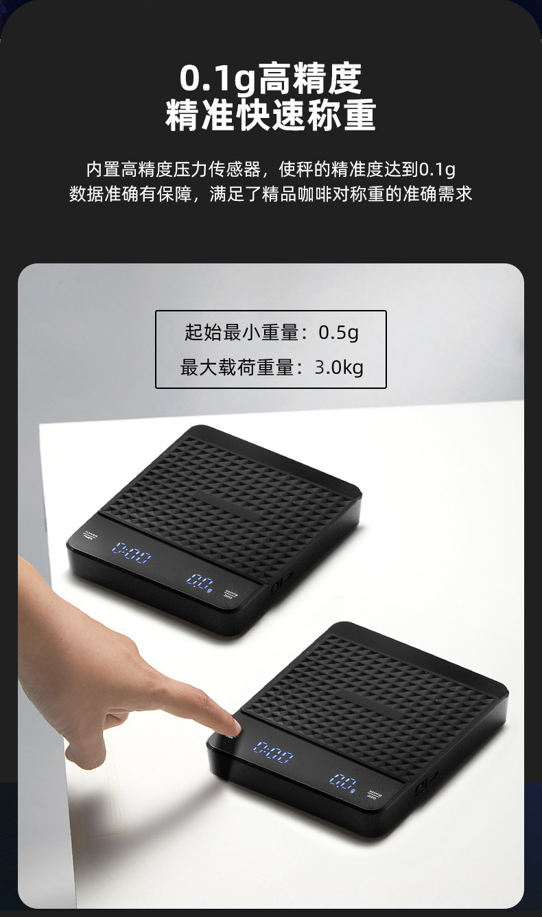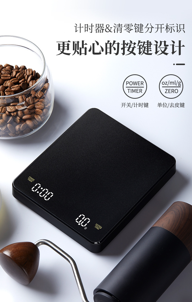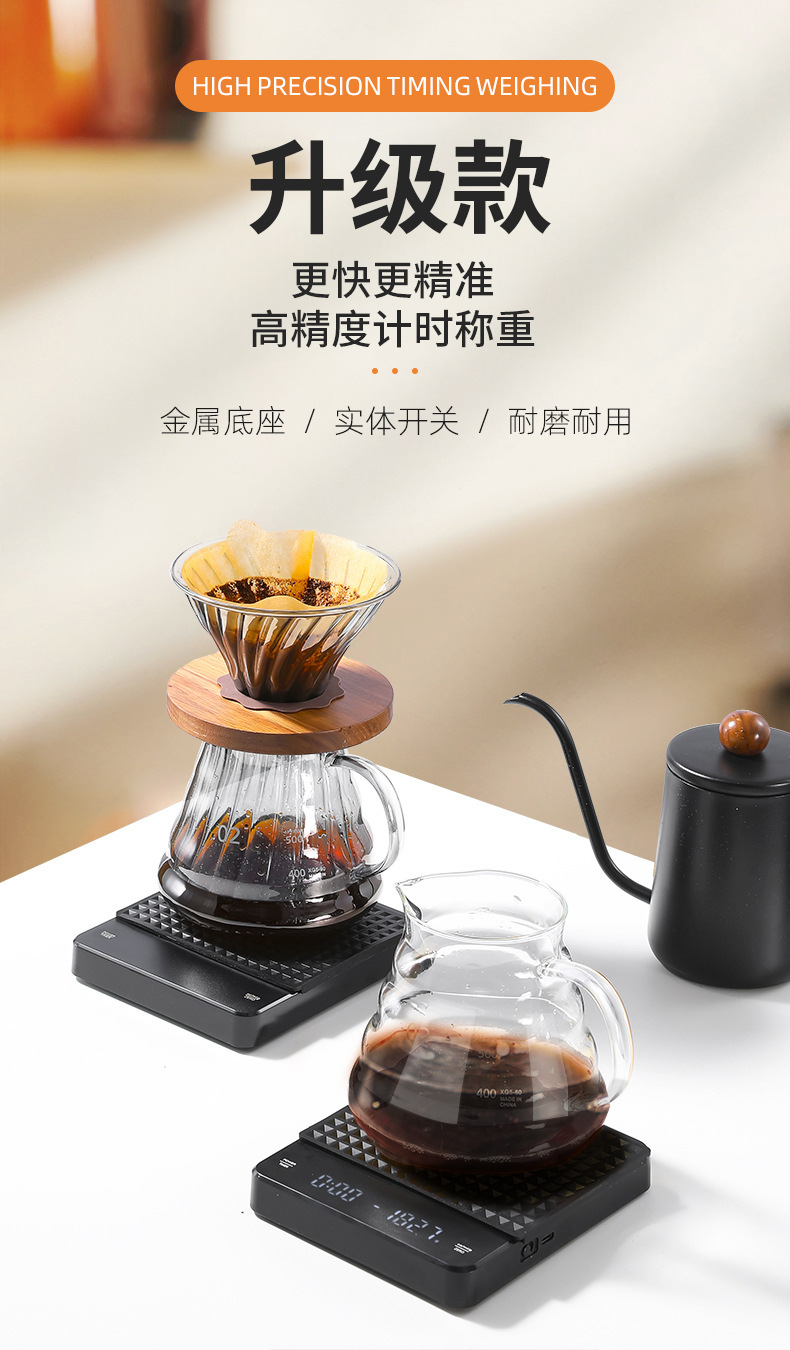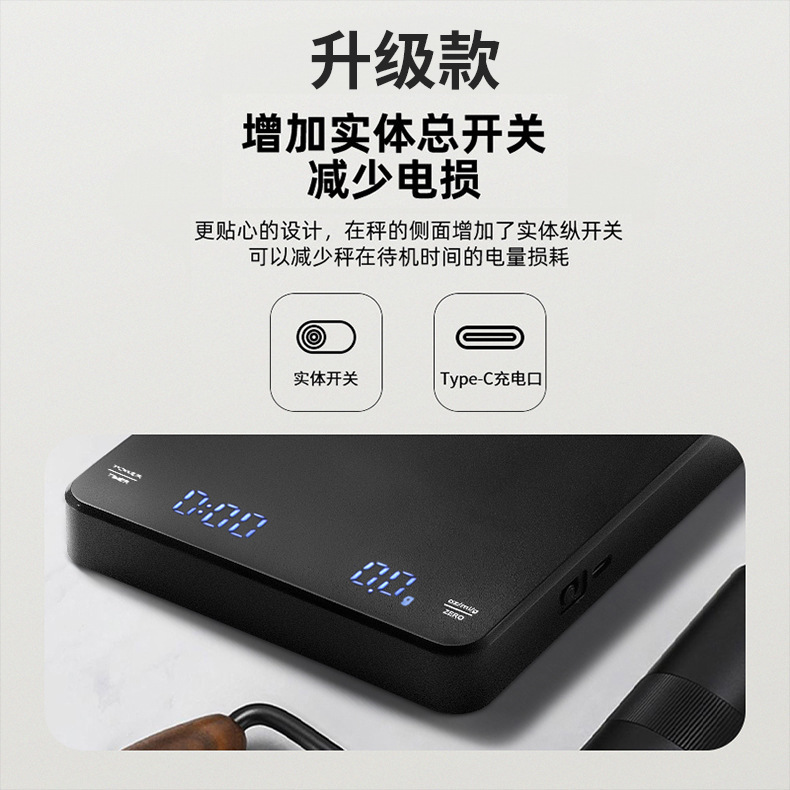 Tiempo de café Escala electrónica tipo-c carga de mano Escala de café pantalla LED italiano Escala de café cocina escala del hogar