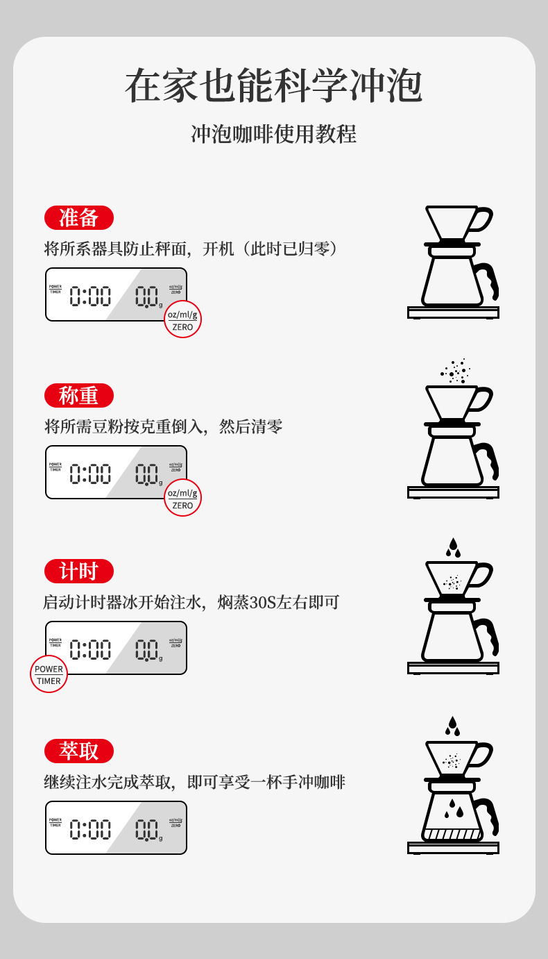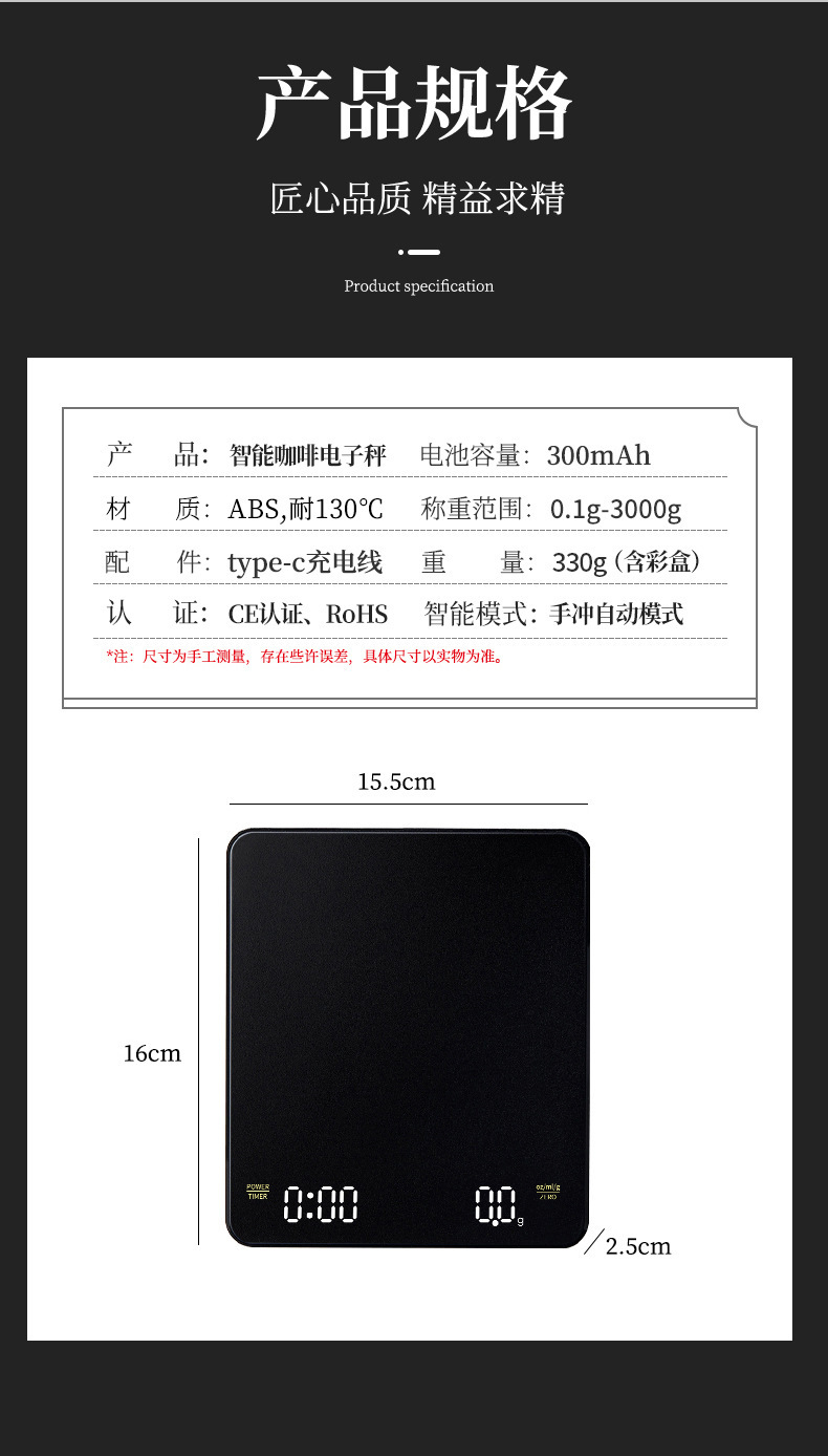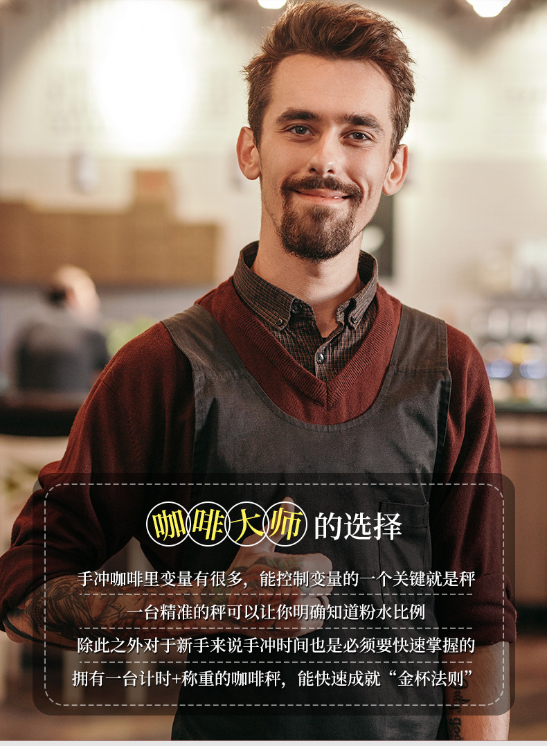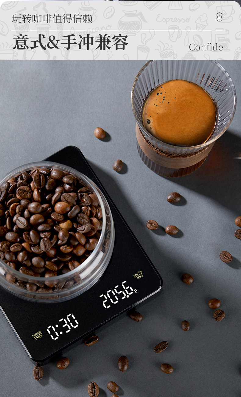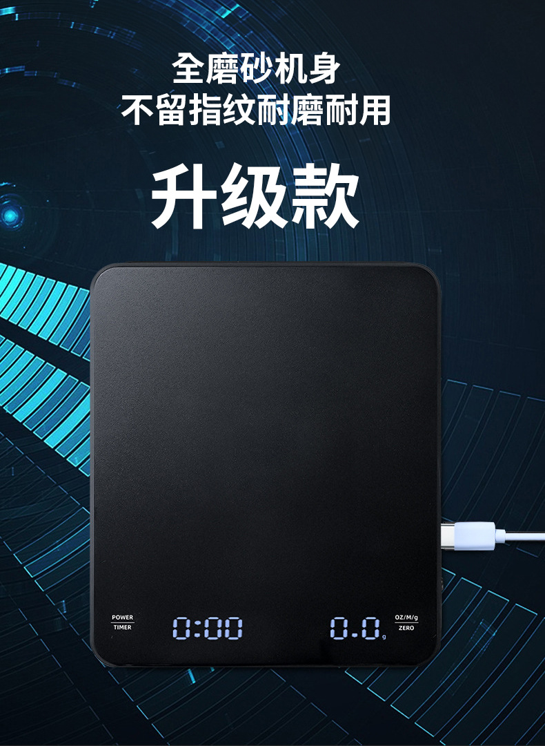 Tiempo de café Escala electrónica tipo-c carga de mano Escala de café pantalla LED italiano Escala de café cocina escala del hogar