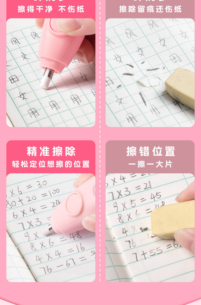 Estudiante creativo Borrador de dibujos animados sin fisuras sin chip eléctrico lápiz de papelería para niños de alto aspecto recarga reemplazable especial