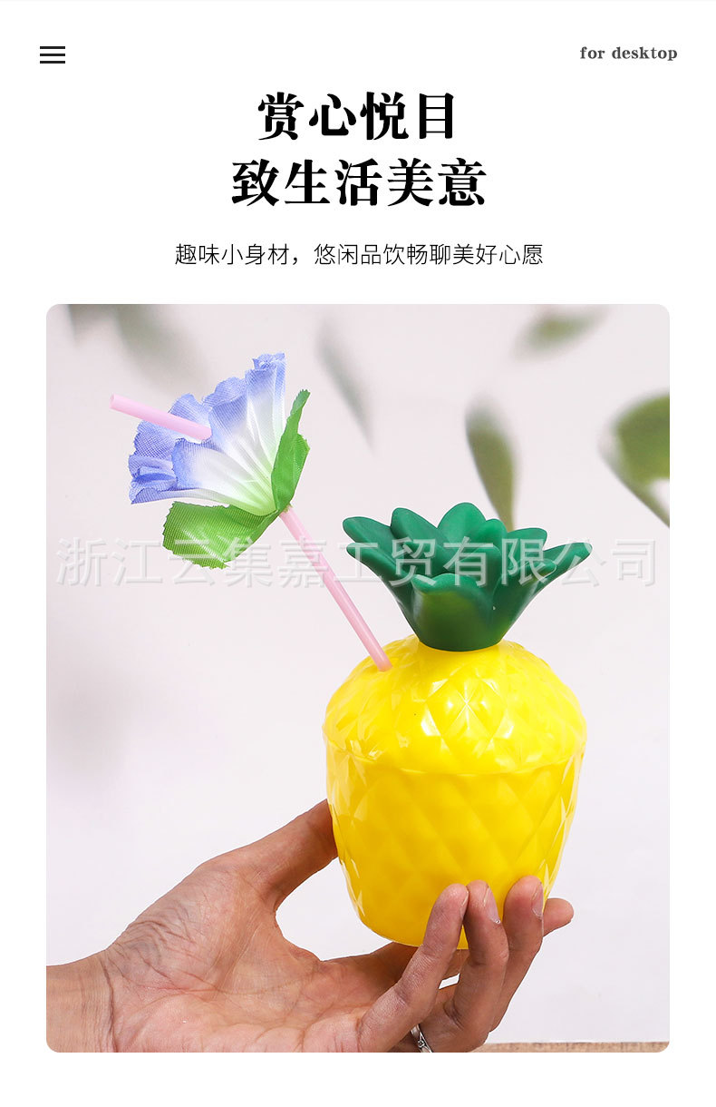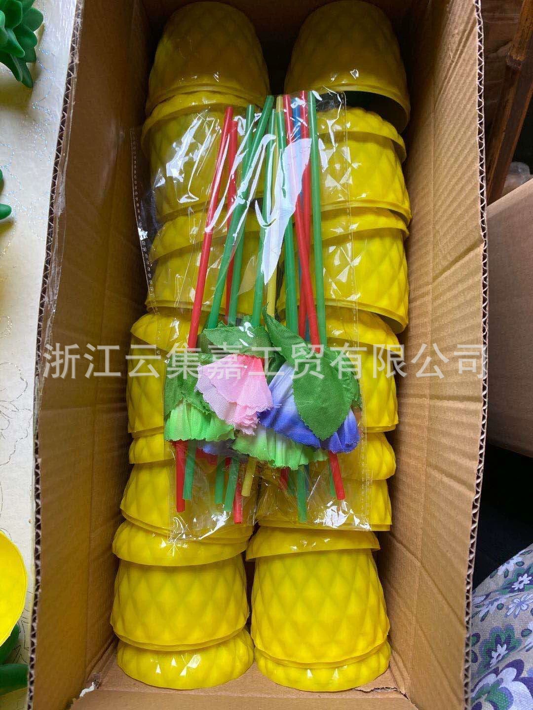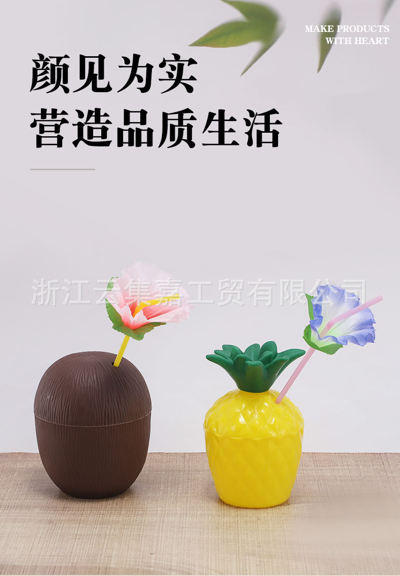 Fábrica de plástico taza de piña taza de paja taza de bebida forma de fruta partido estilo Hawaiano Tiki taza puede ser de color fijo