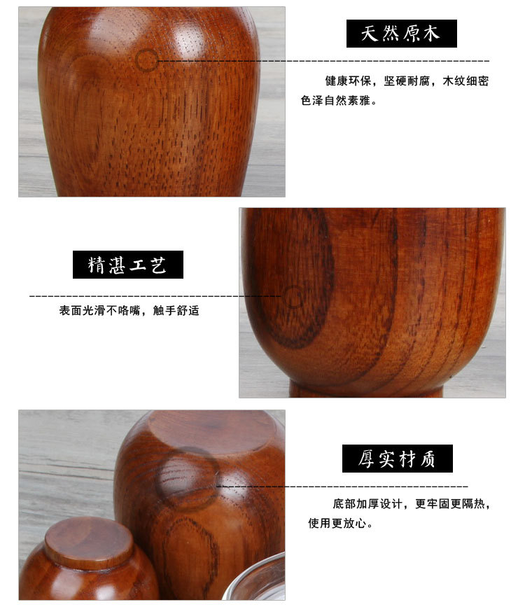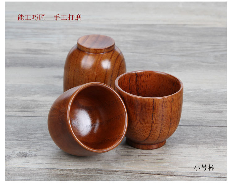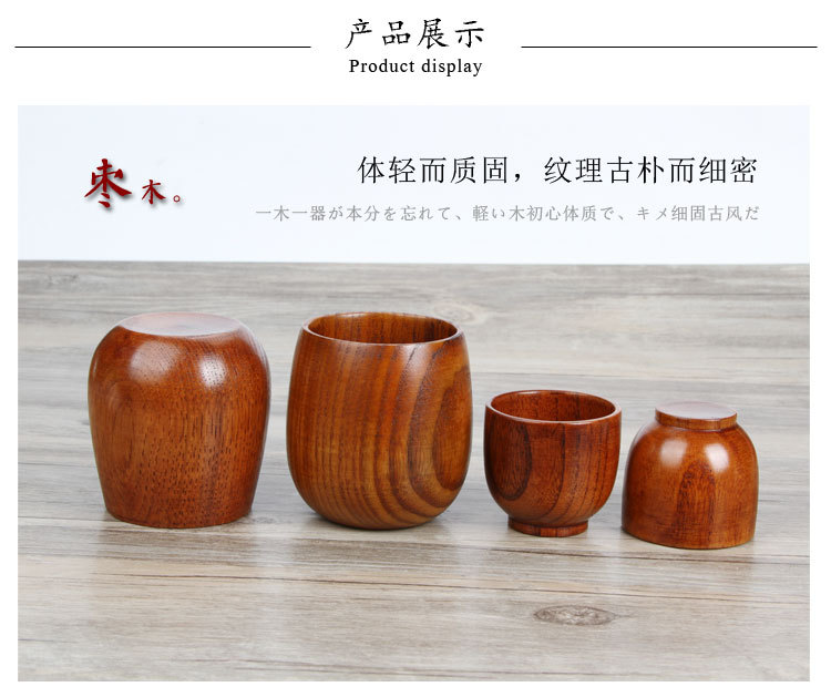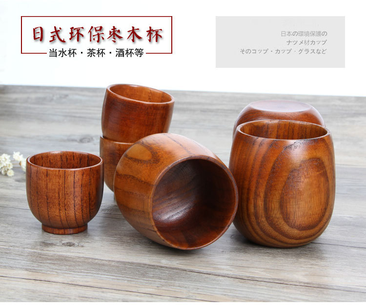 Taza de madera de estilo japonés, sake de madera de azufaifa, taza de madera, taza de vino pequeña, taza de agua de madera maciza, taza a mano, taza de té de restaurante, letras