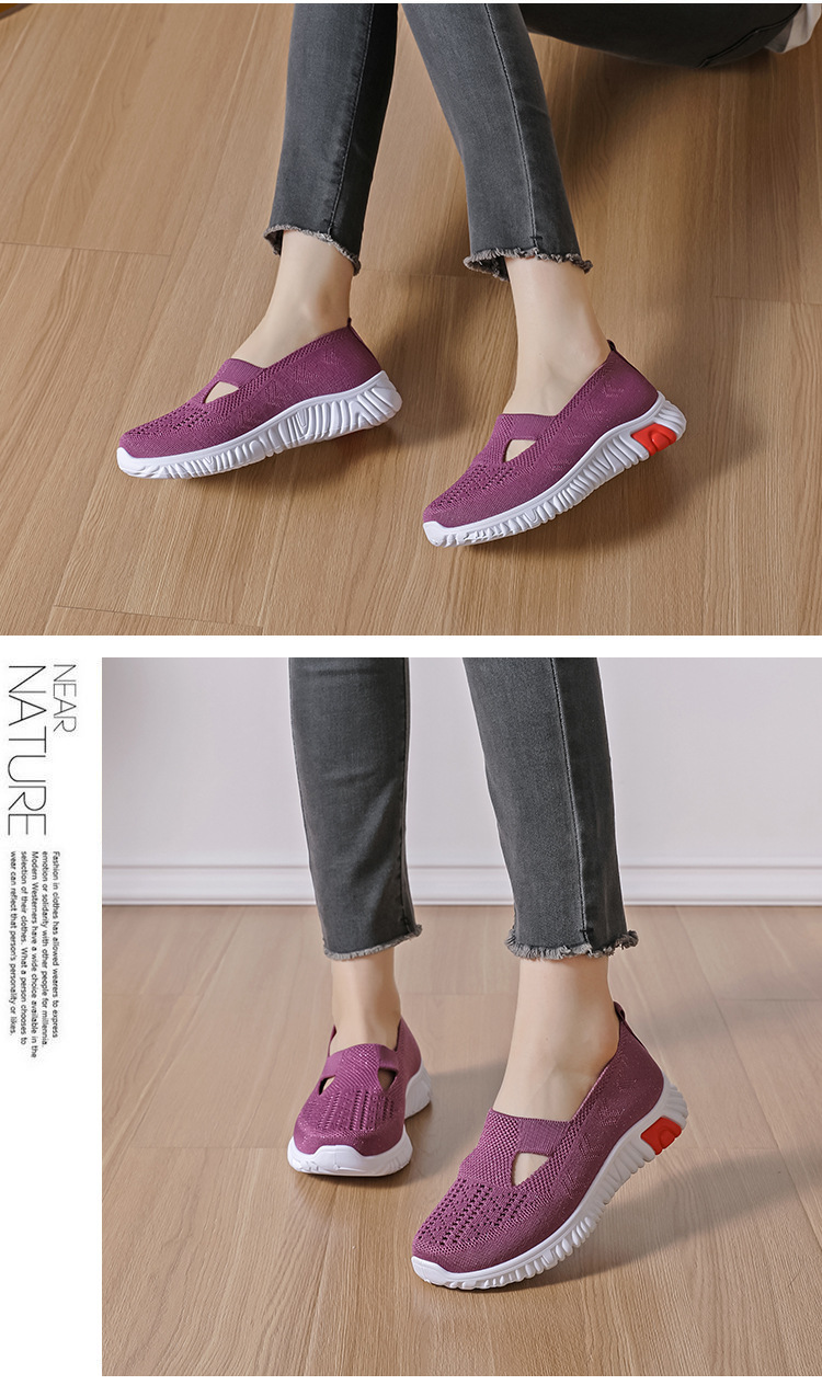Directo de fábrica verano nueva superficie de malla transpirable volando tejido madre de mediana edad y ancianos zapatos cómodos antideslizantes zapatos de baile cuadrados de mujer