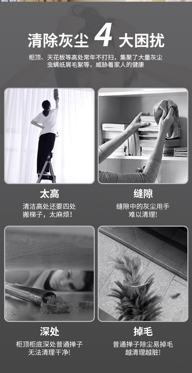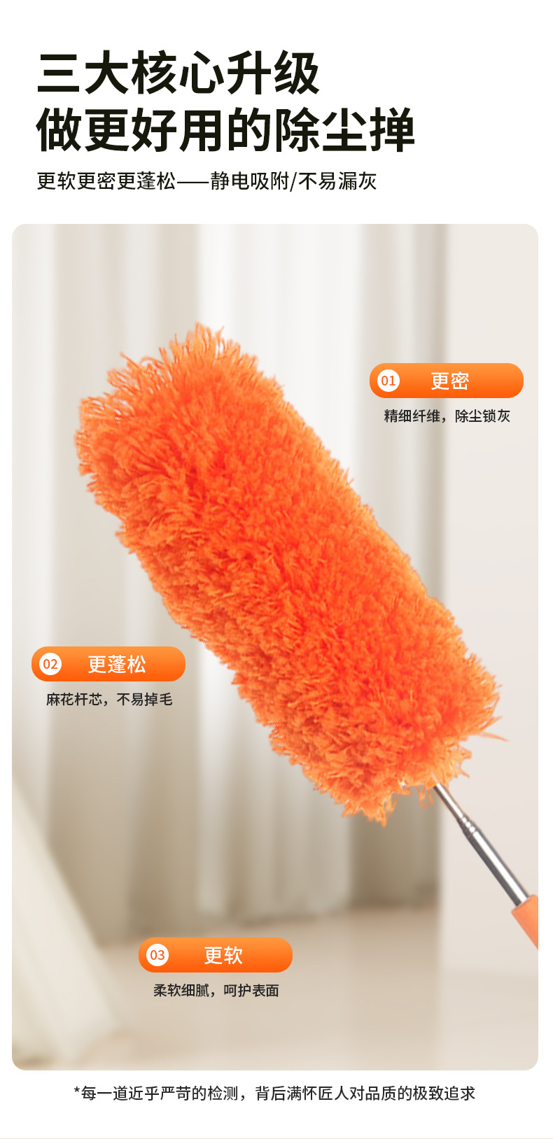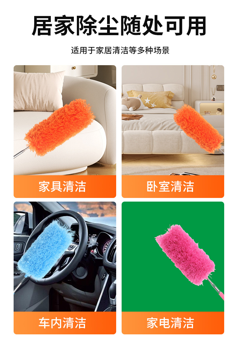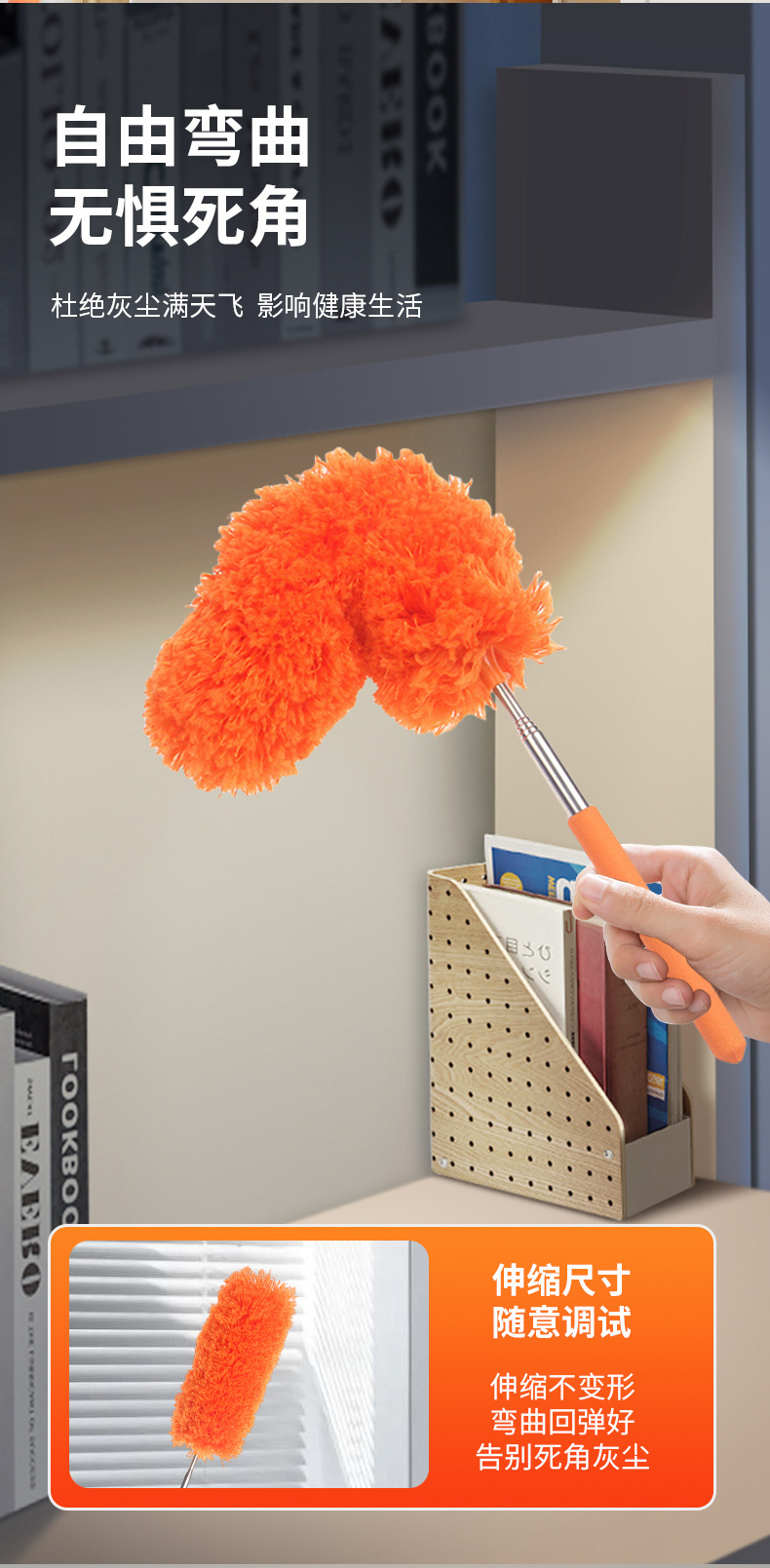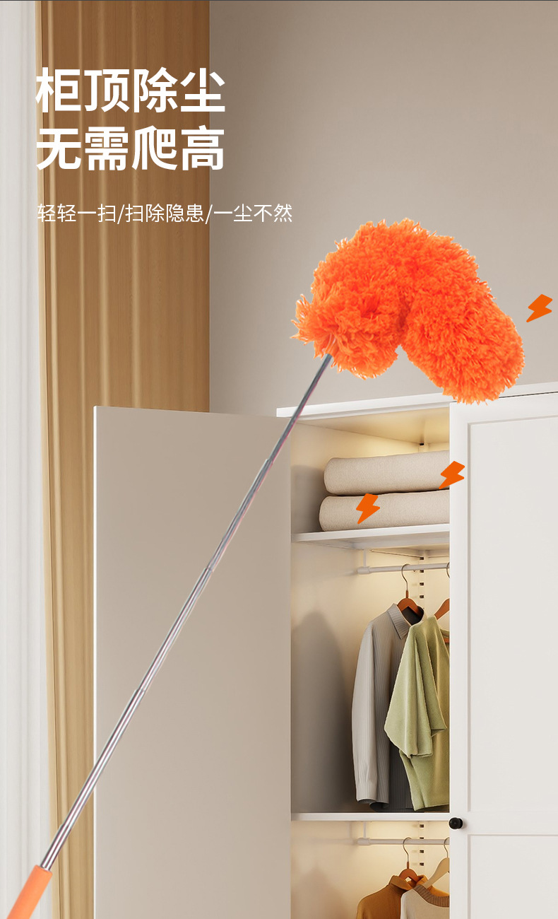Plumero de Fibra Transfronterizo, Extensible para Limpiar Lugares Altos como Encimeras de Gabinetes, Flexible, Engrosado y Denso, en Existencia.