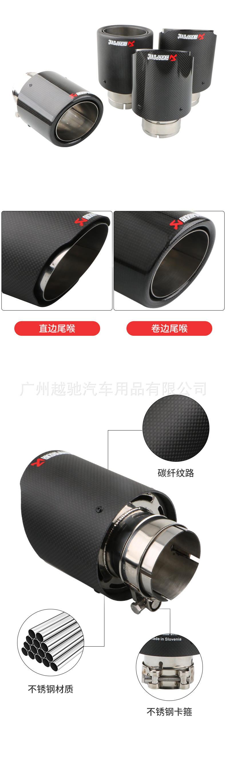 Modificación del coche garganta trasera tubo único AK Escorpio garganta trasera de fibra de carbono real tubo de escape de acero inoxidable tubo de cola de fibra de carbono universal