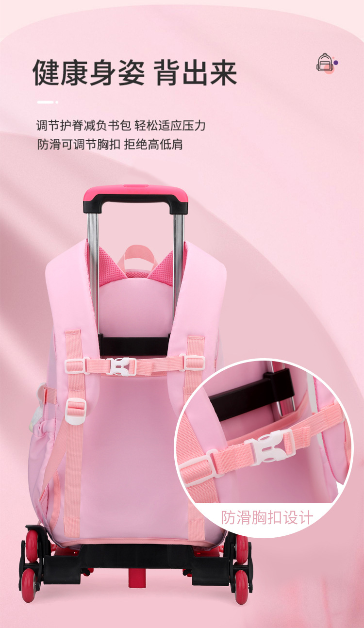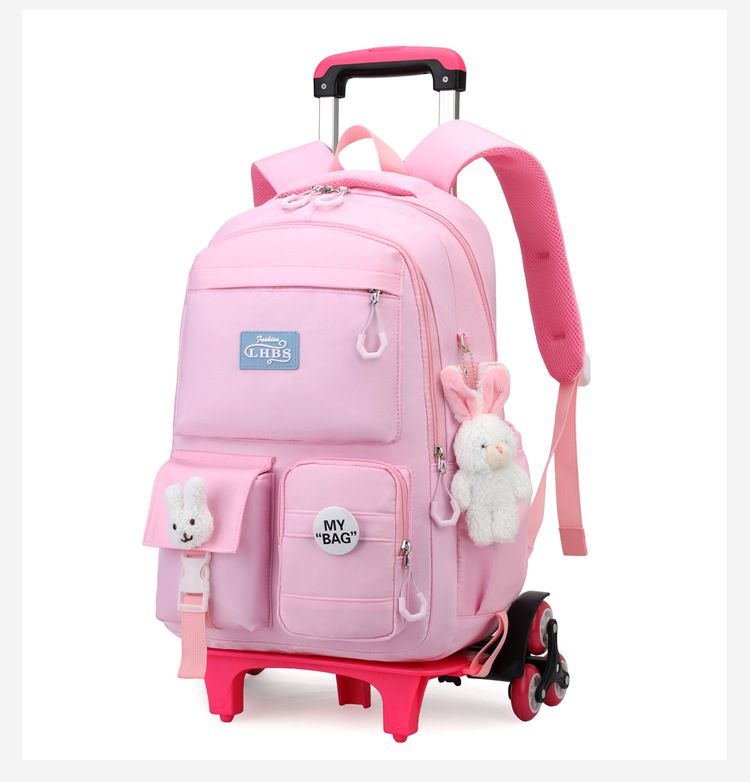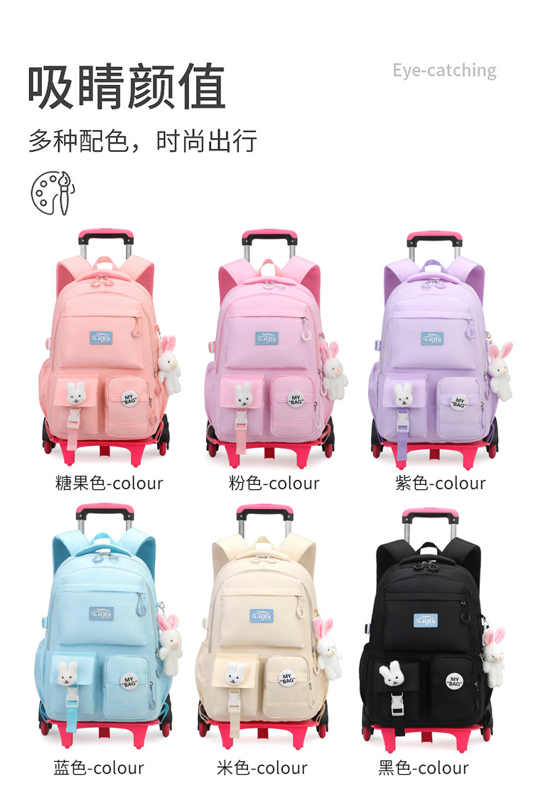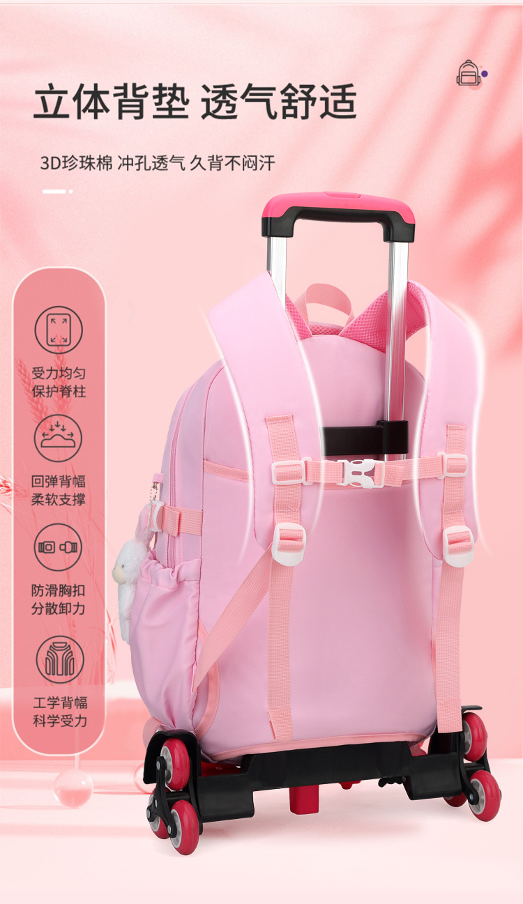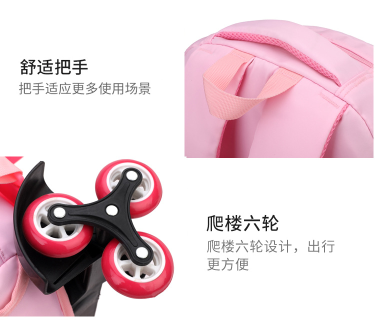 Pescado natural de los niños de la escuela primaria estudiante de la carretilla mochila femenina estilo coreano de gran capacidad estudiante de secundaria de seis ruedas de escalada mochila