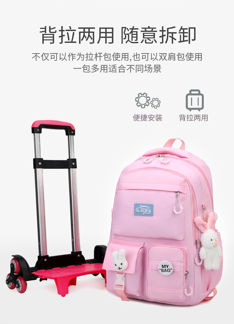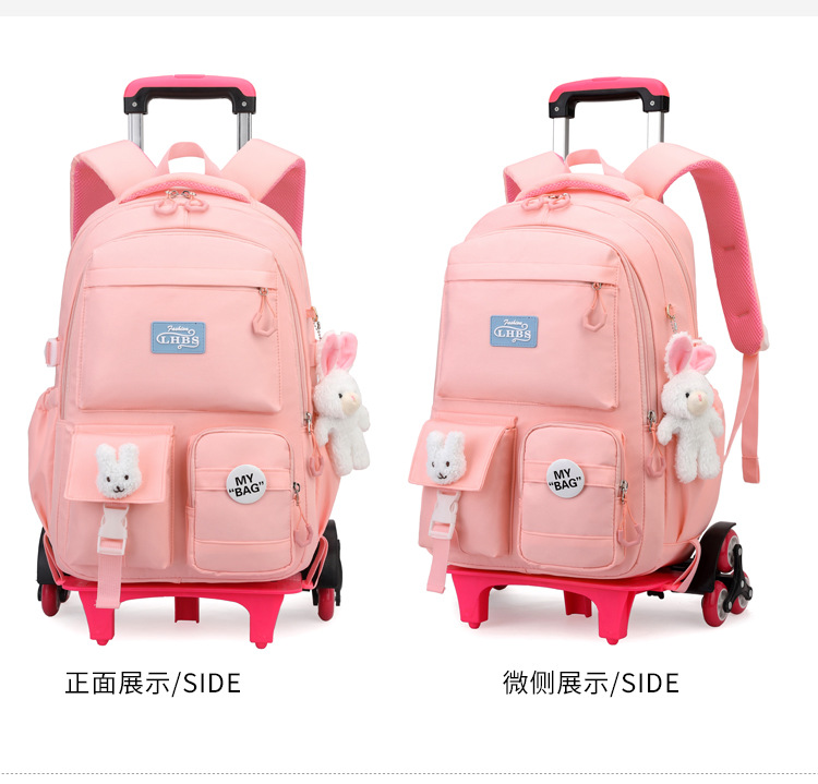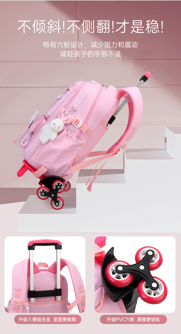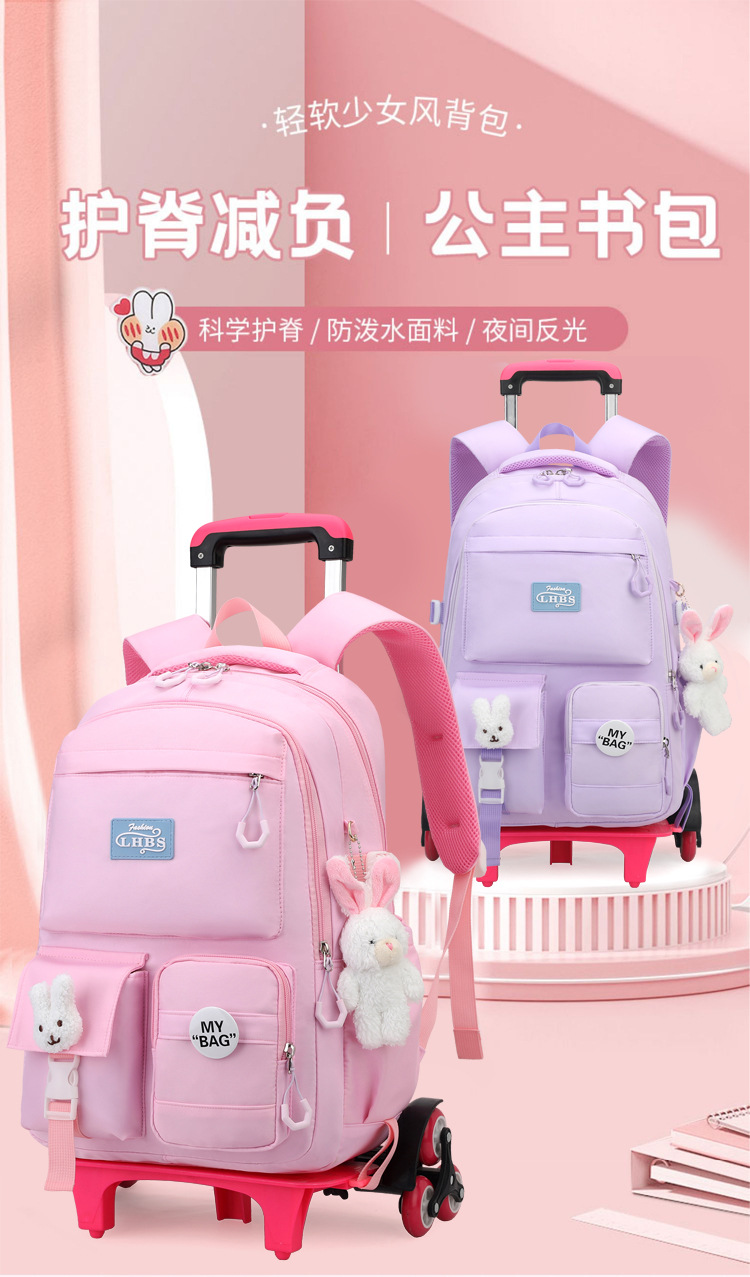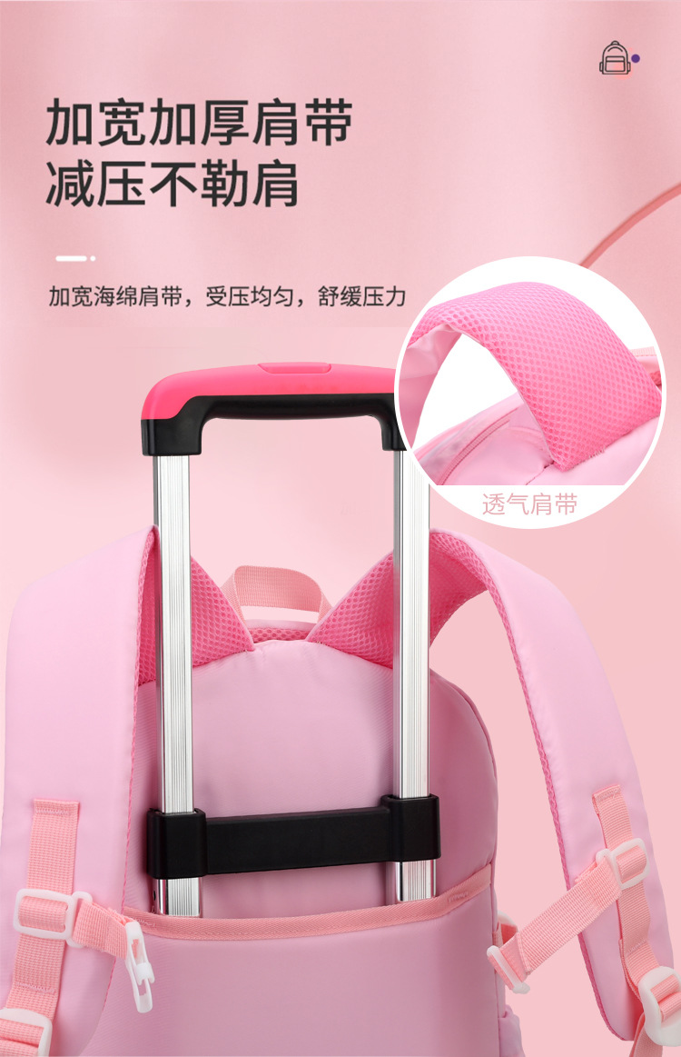 Pescado natural de los niños de la escuela primaria estudiante de la carretilla mochila femenina estilo coreano de gran capacidad estudiante de secundaria de seis ruedas de escalada mochila
