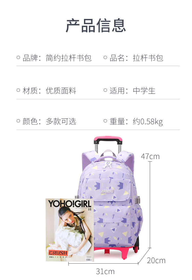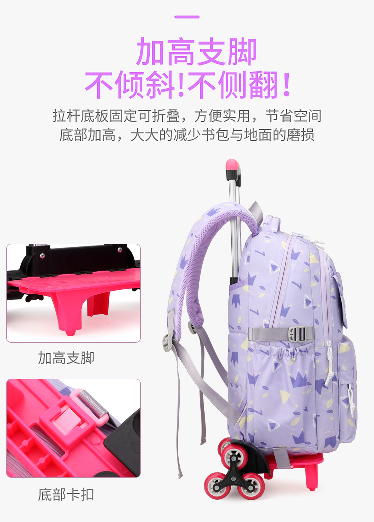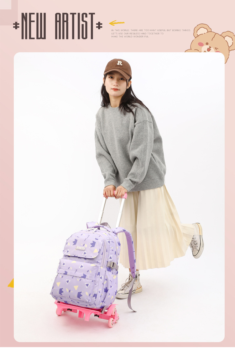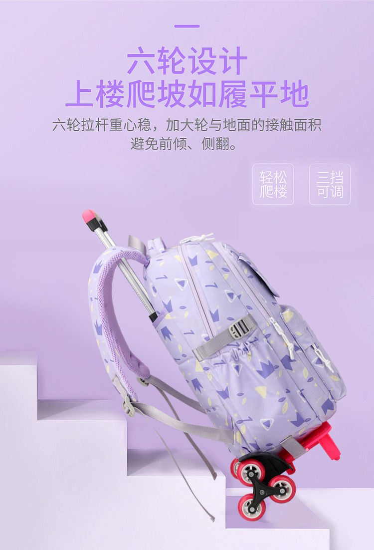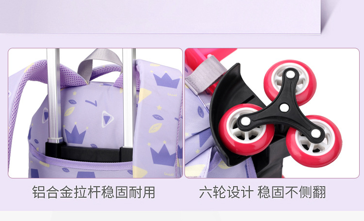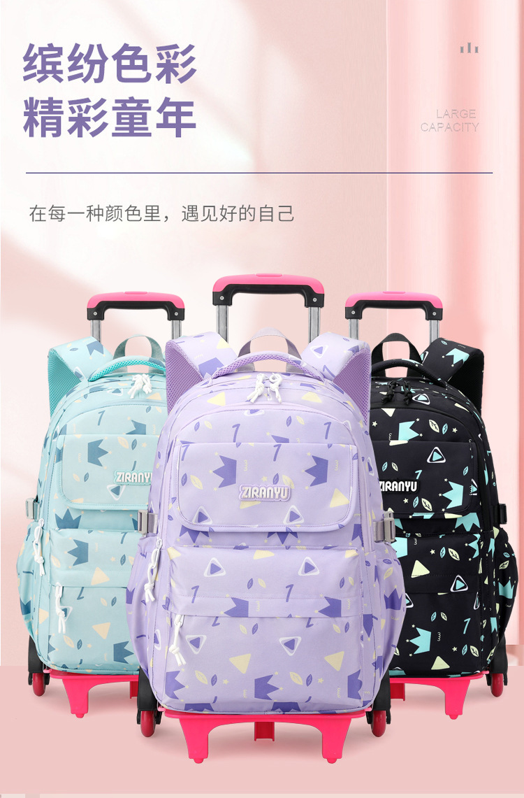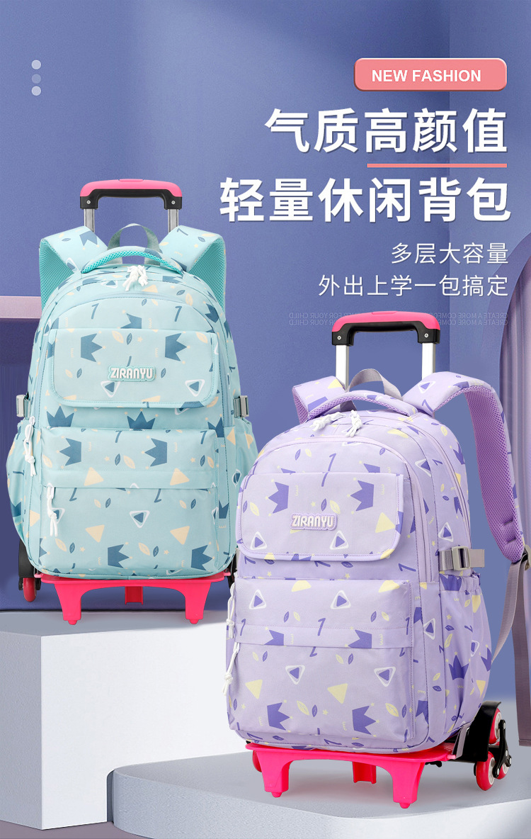 Mochila escolar con ruedas transfronterizas para niñas, estudiantes de primaria, estudiantes de secundaria de tercer, cuarto y sexta grado
