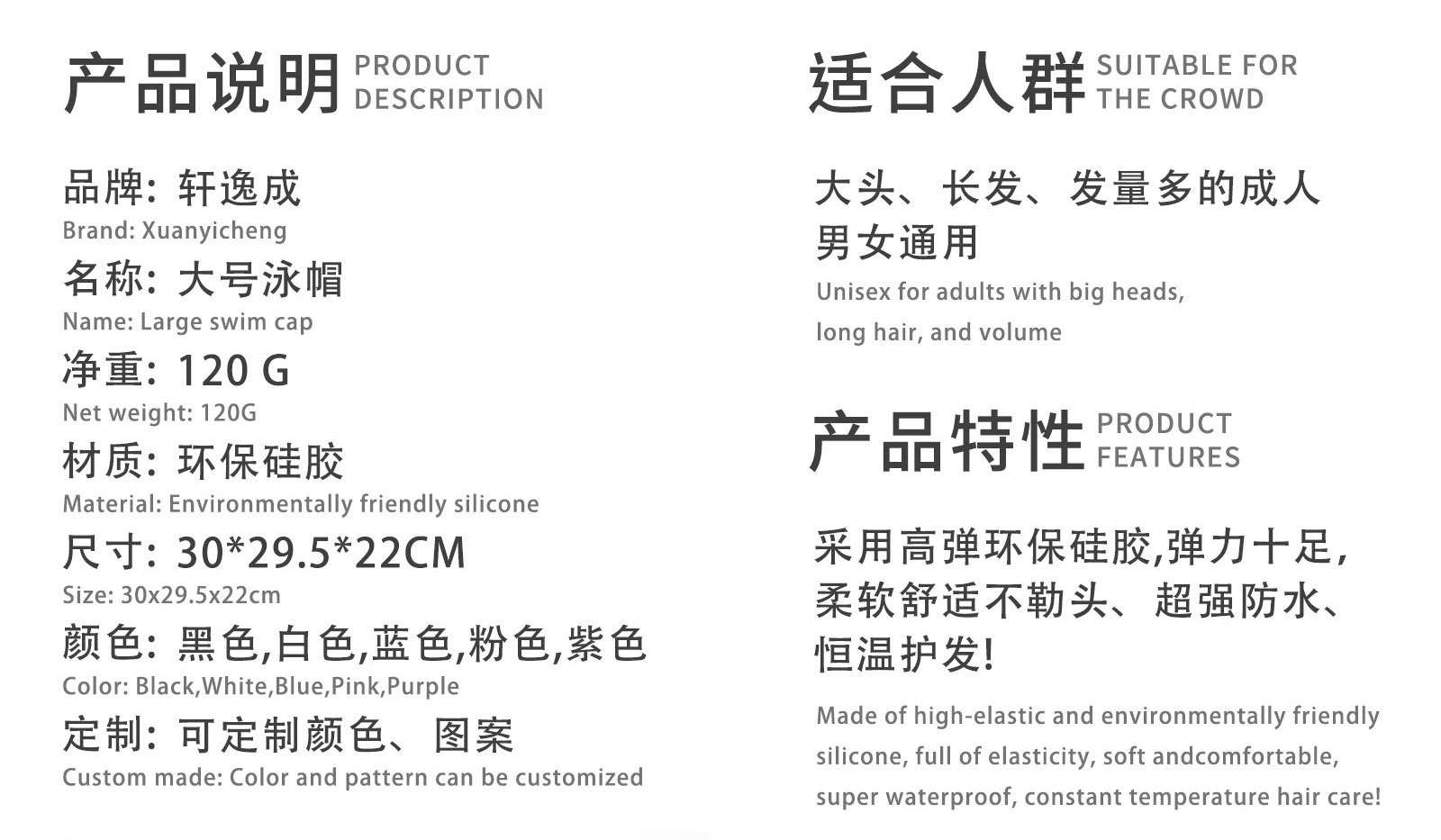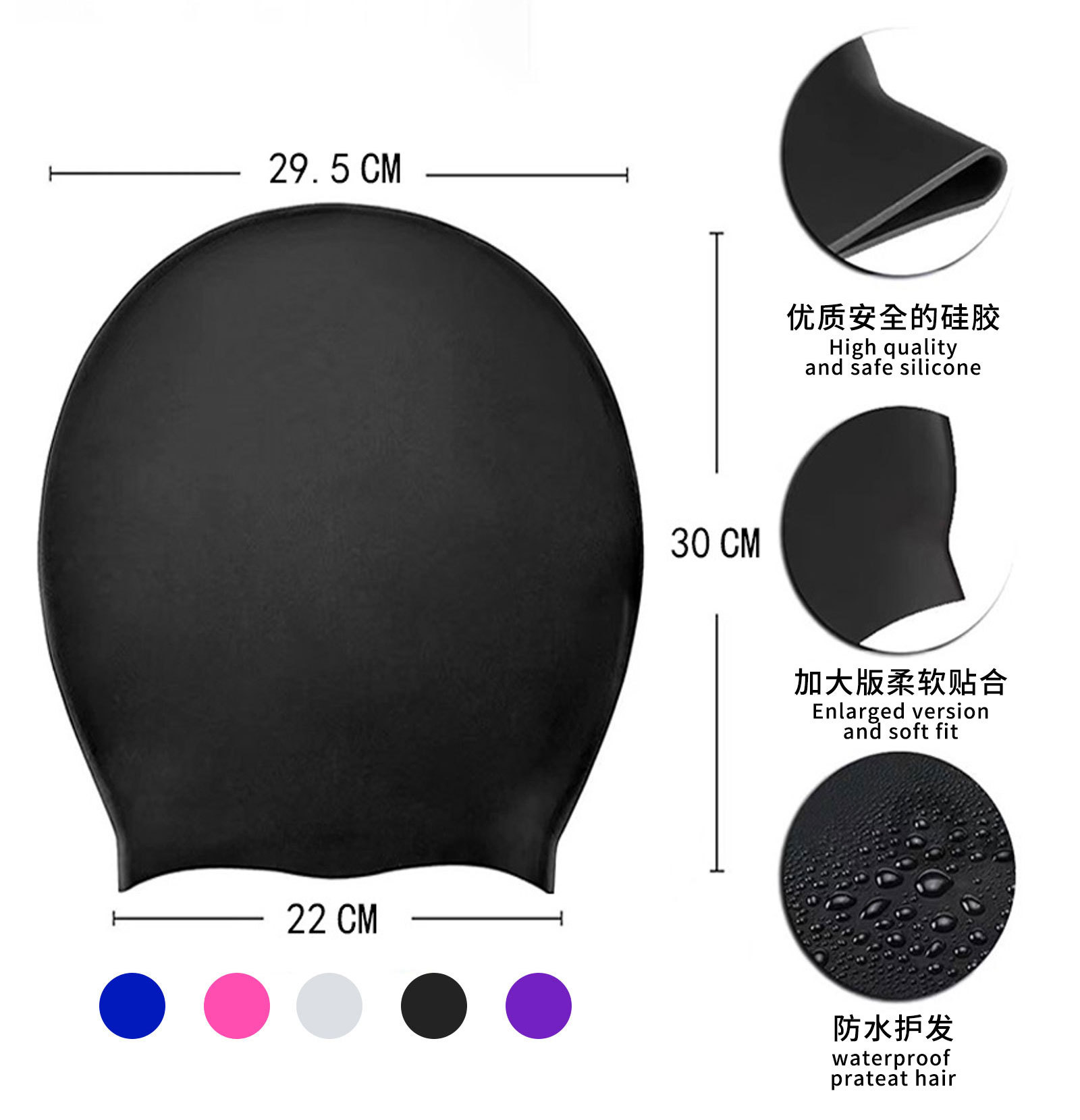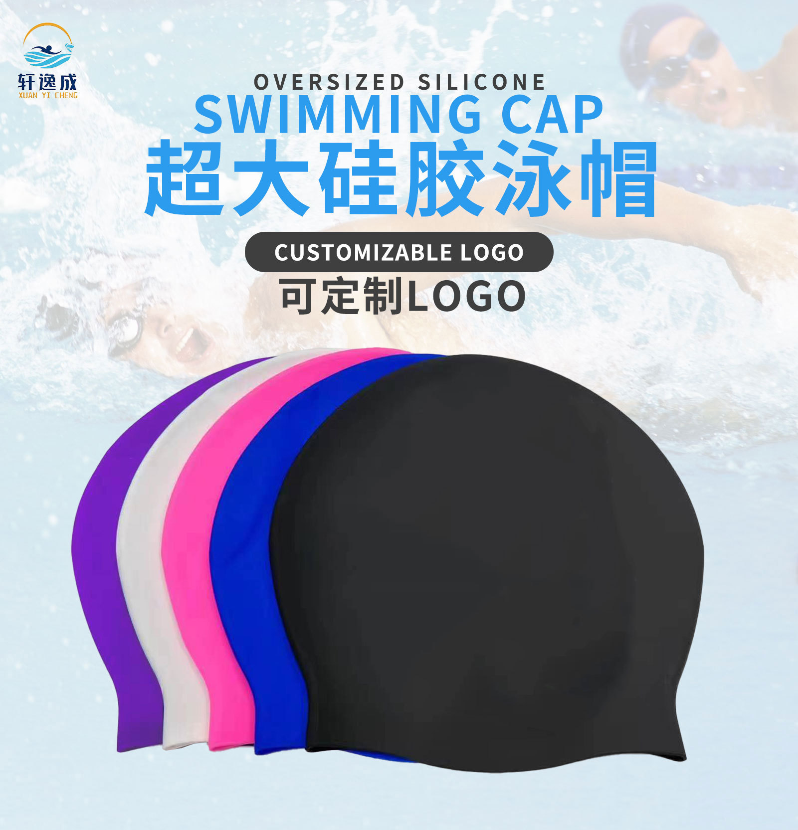 Gorra de natación de silicona extra grande gorra de natación de protección auditiva gigante transfronteriza gorra de natación vendedora caliente impresa LOGO fábrica al por mayor