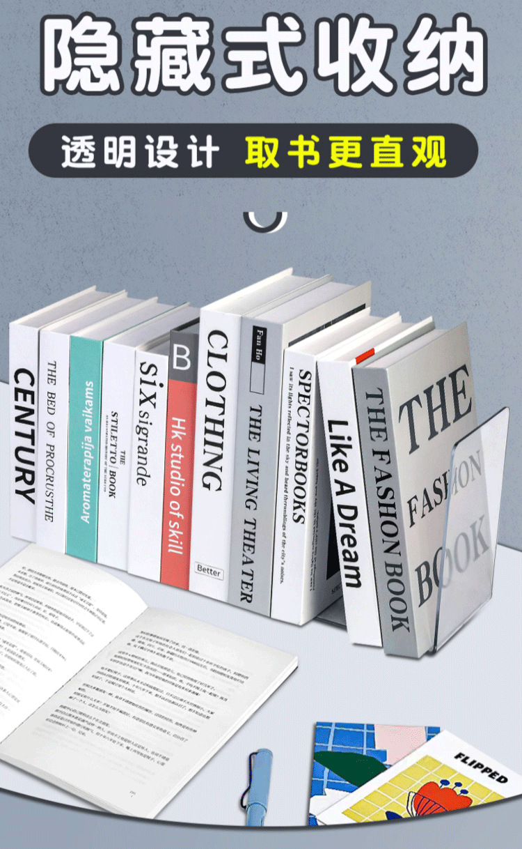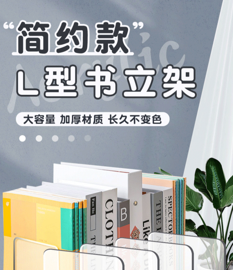 Acrílico ins estilo transparente tipo L simple soporte de Libro Grande soporte de libro estantería deflector de almacenamiento de libros de escritorio artefacto